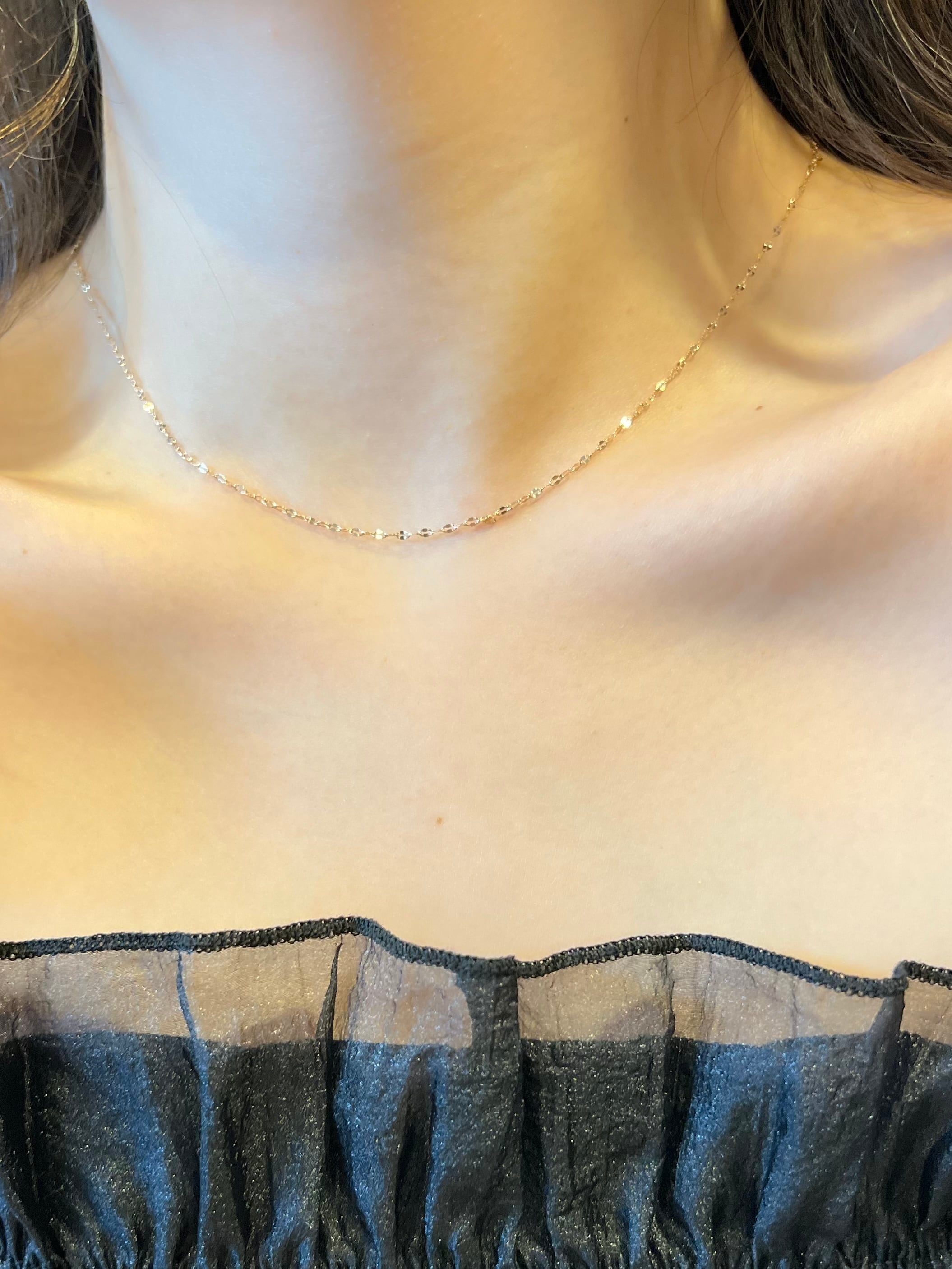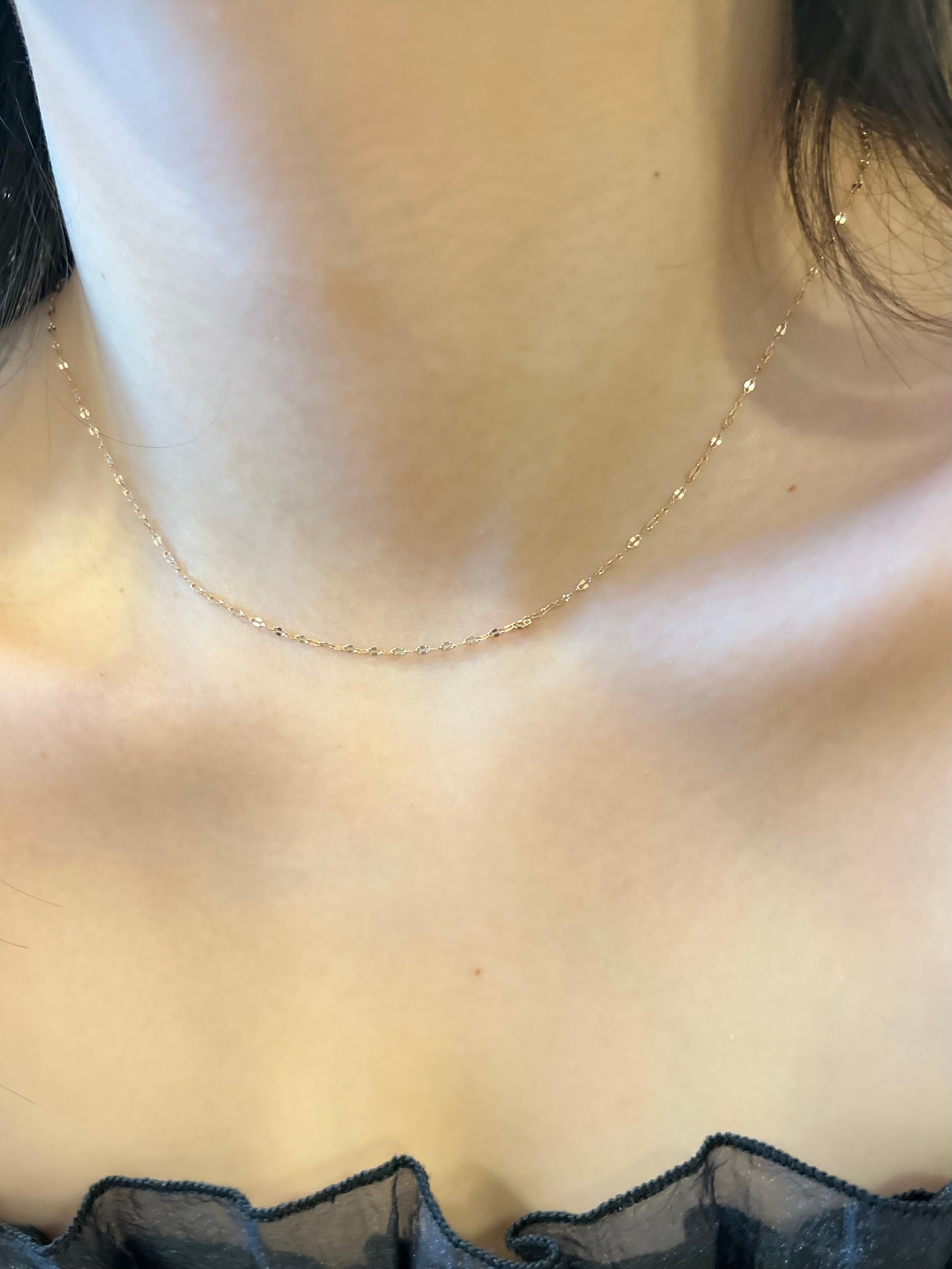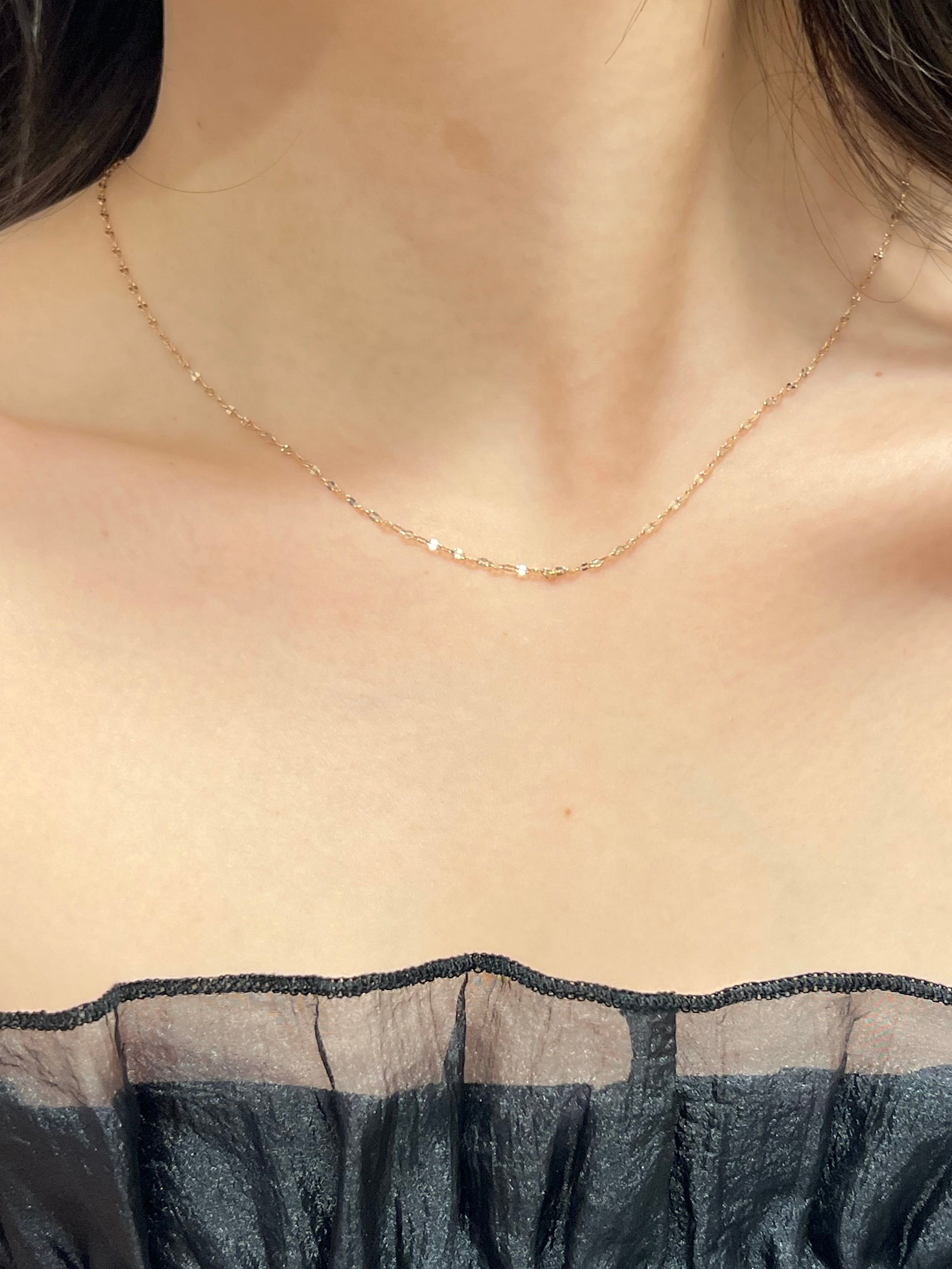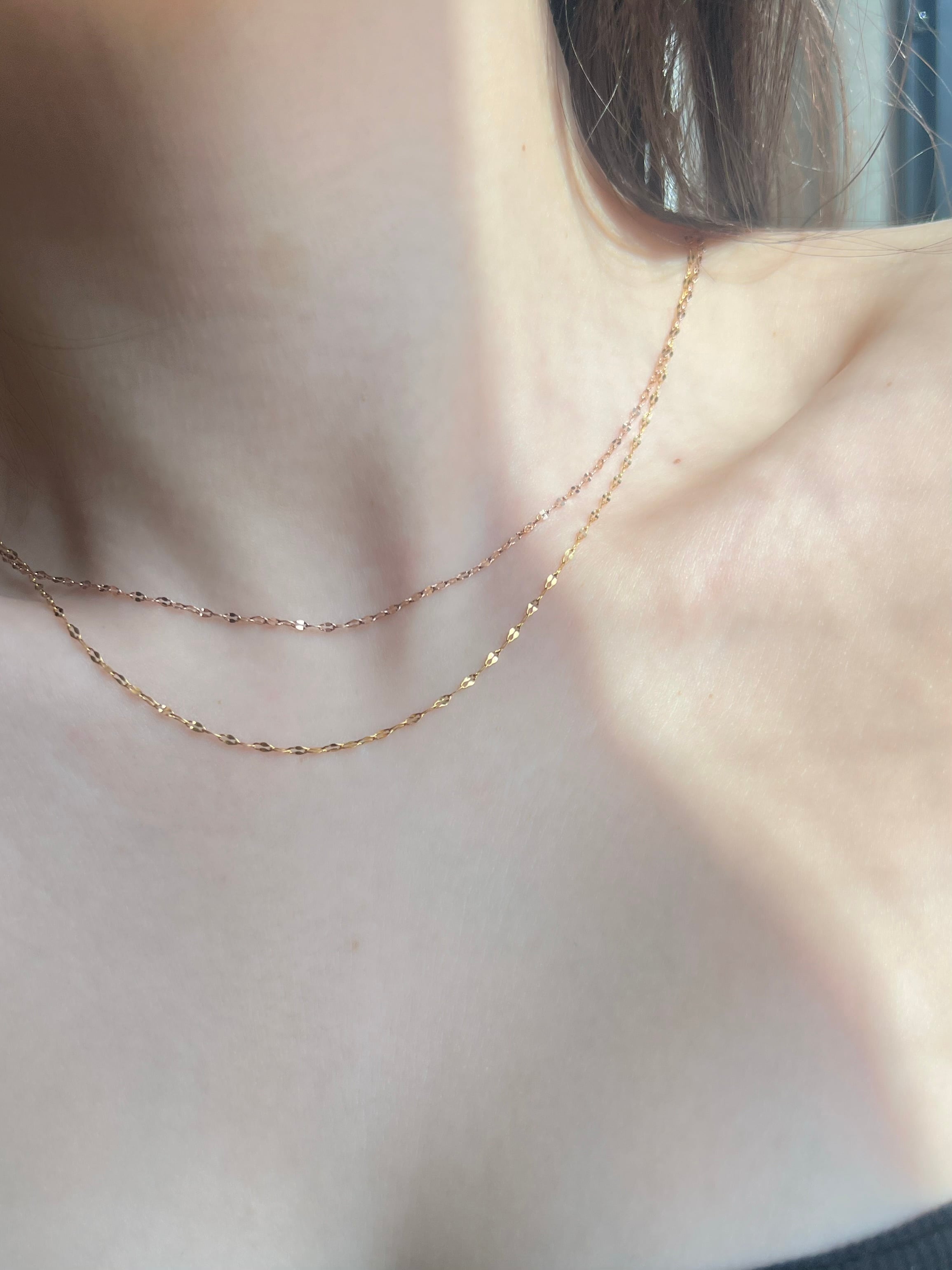 その名の通り、花びらのような小さなプレートが等間隔で並んだデザインチェーンです。