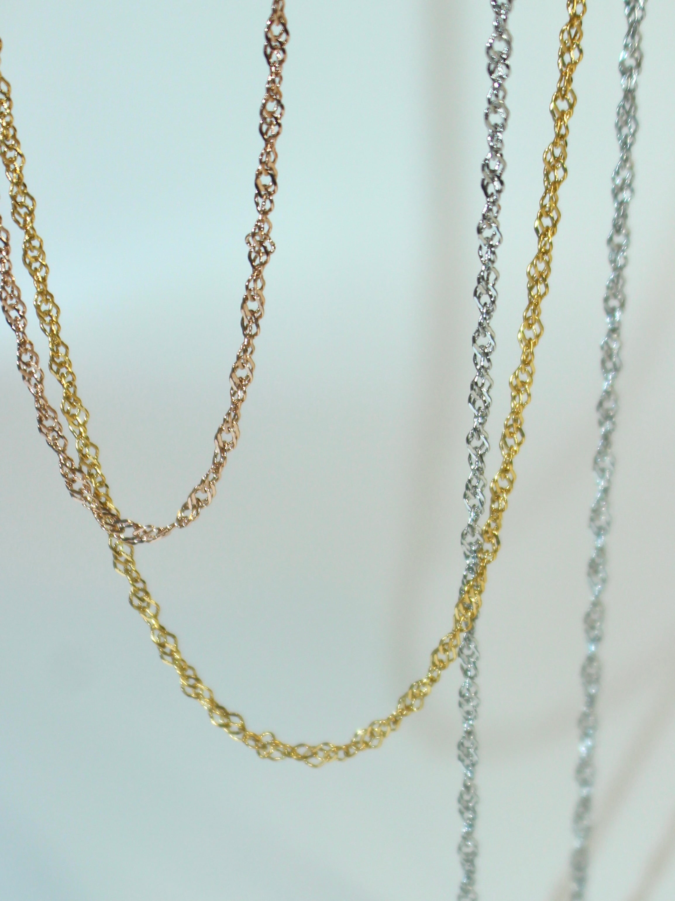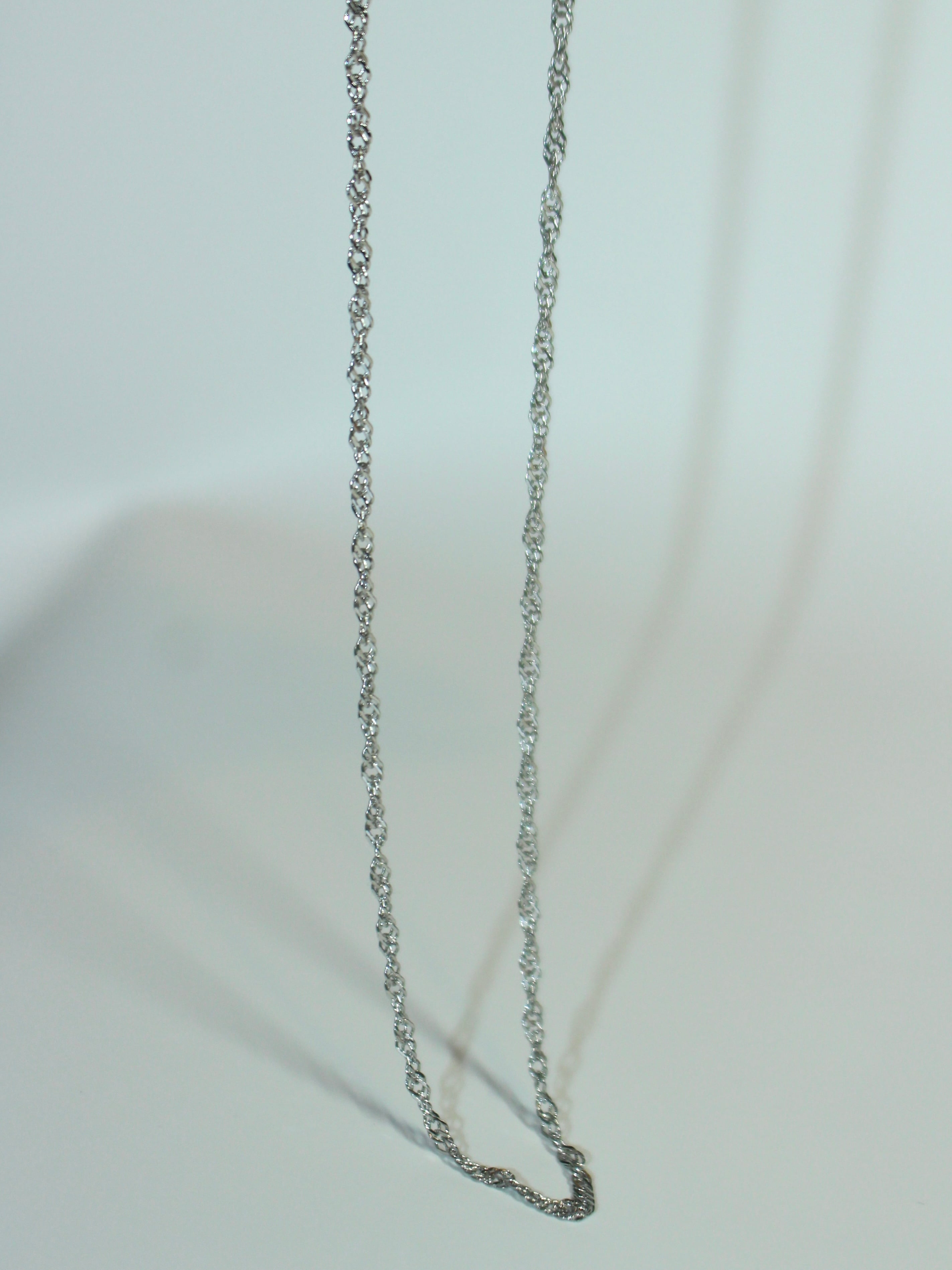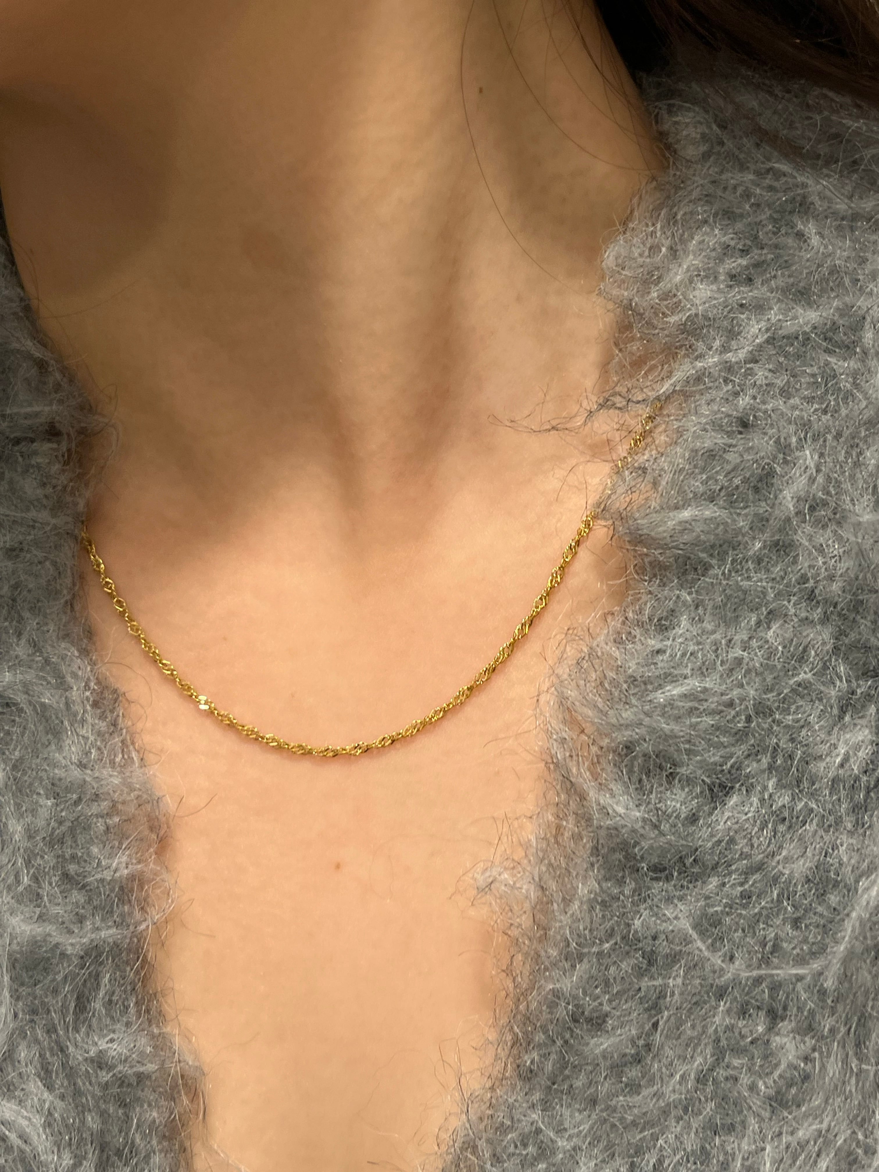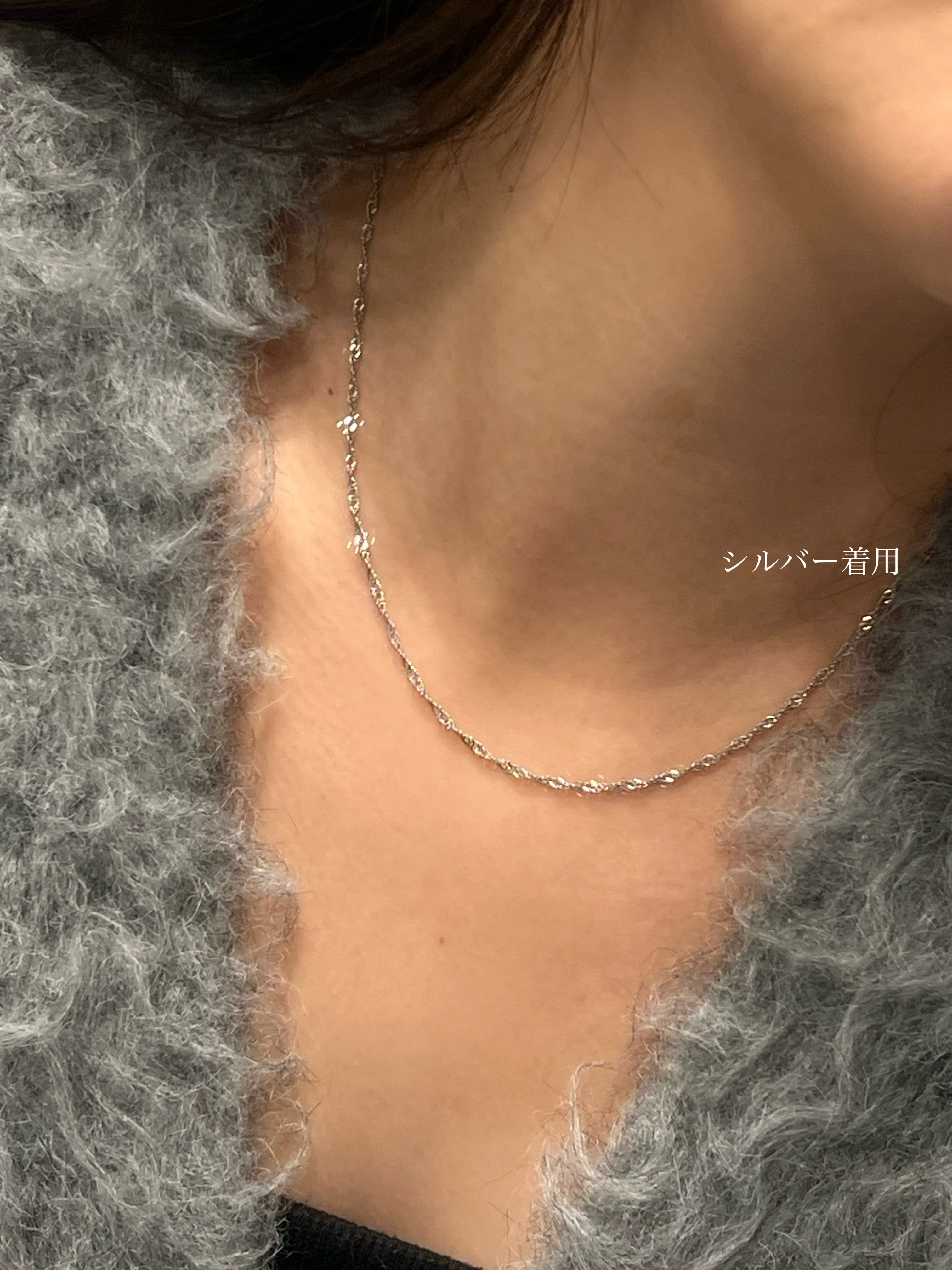 繊細なツイストが光を反射し、上品な輝きを放つスクリューチェーンネックレス。