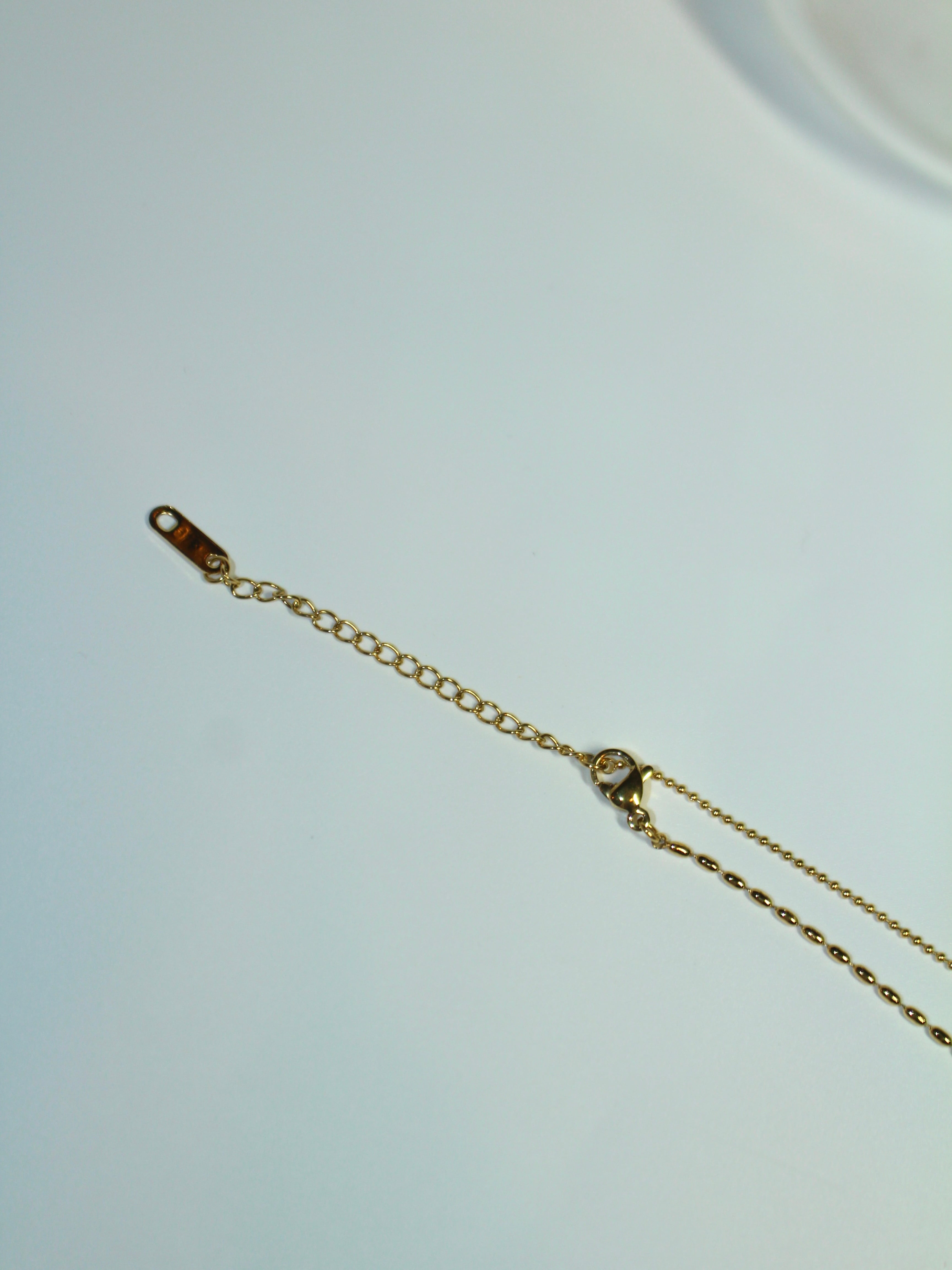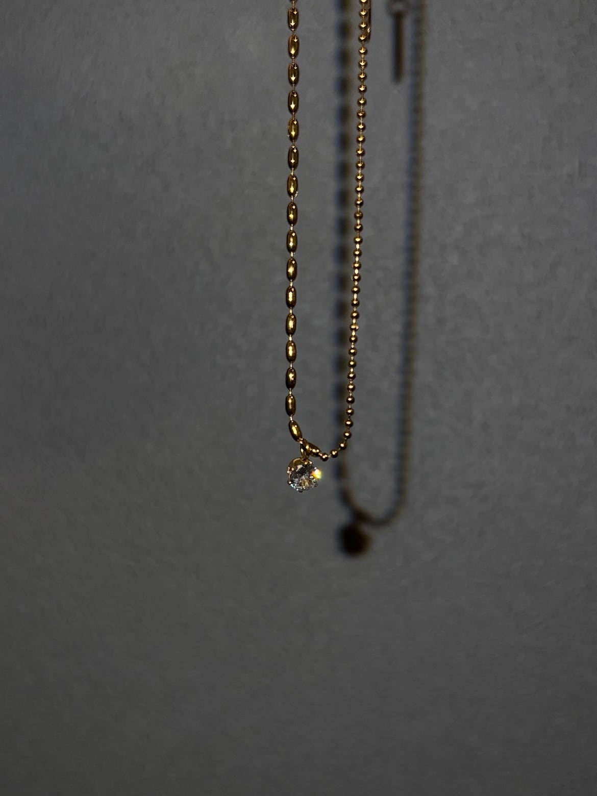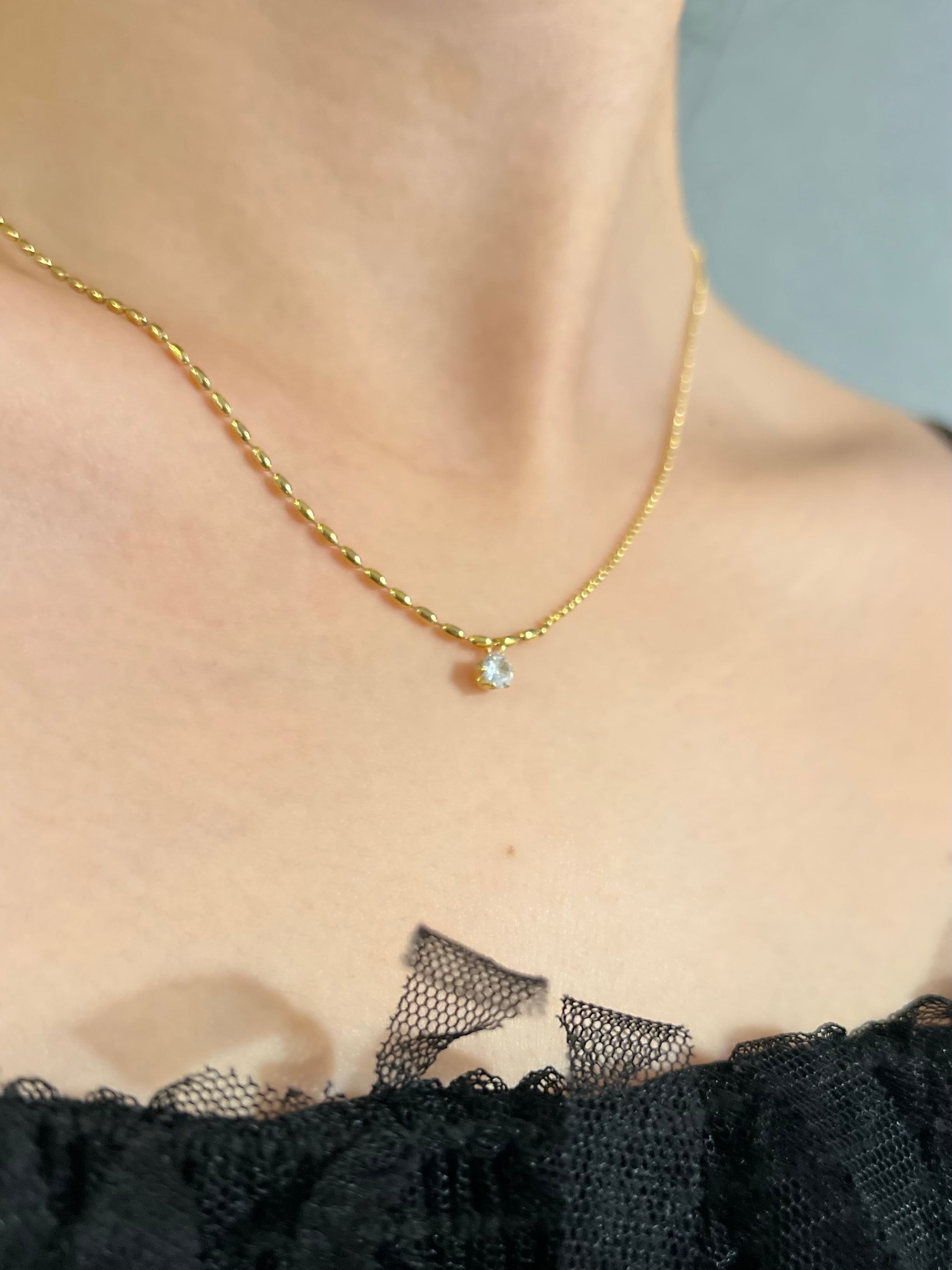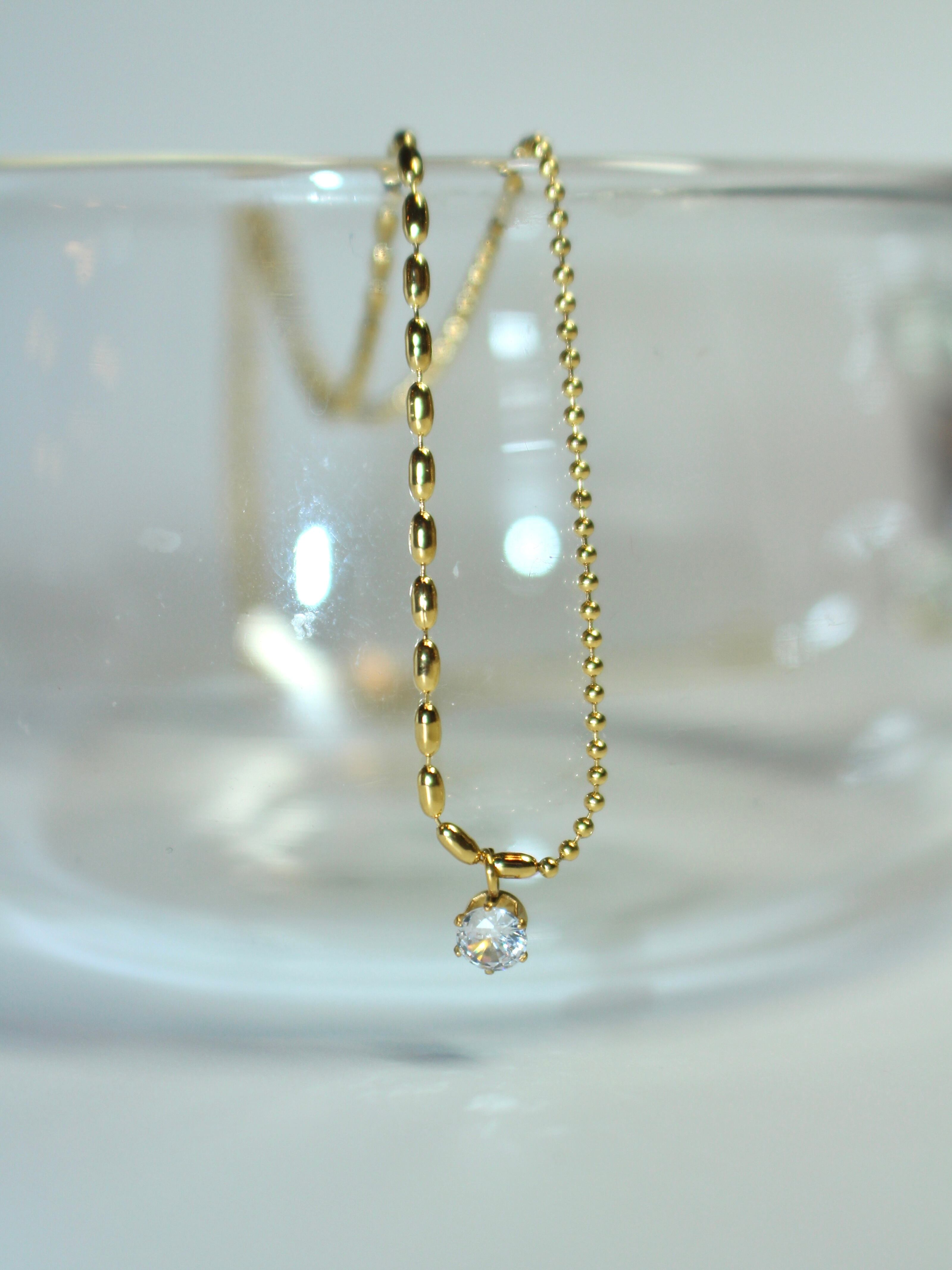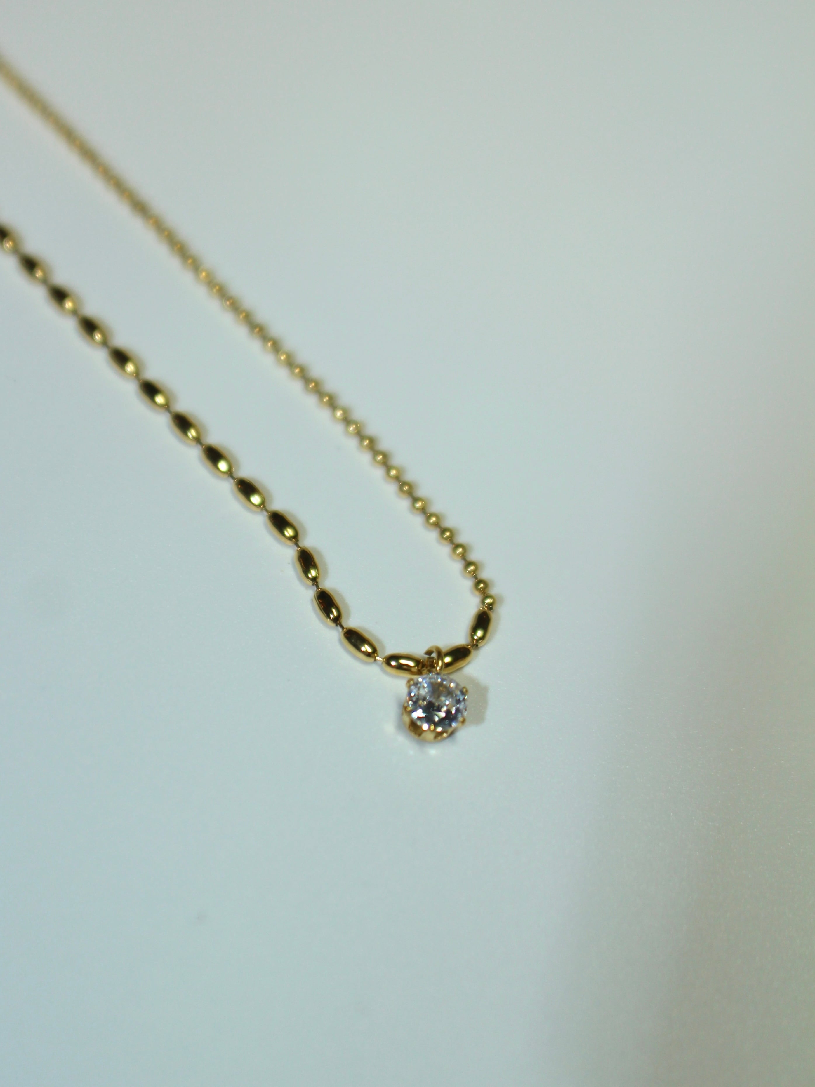 中央で粒の大きさが変わるチェーンに、中央でジルコニアが揺れる上品なネックレス。
