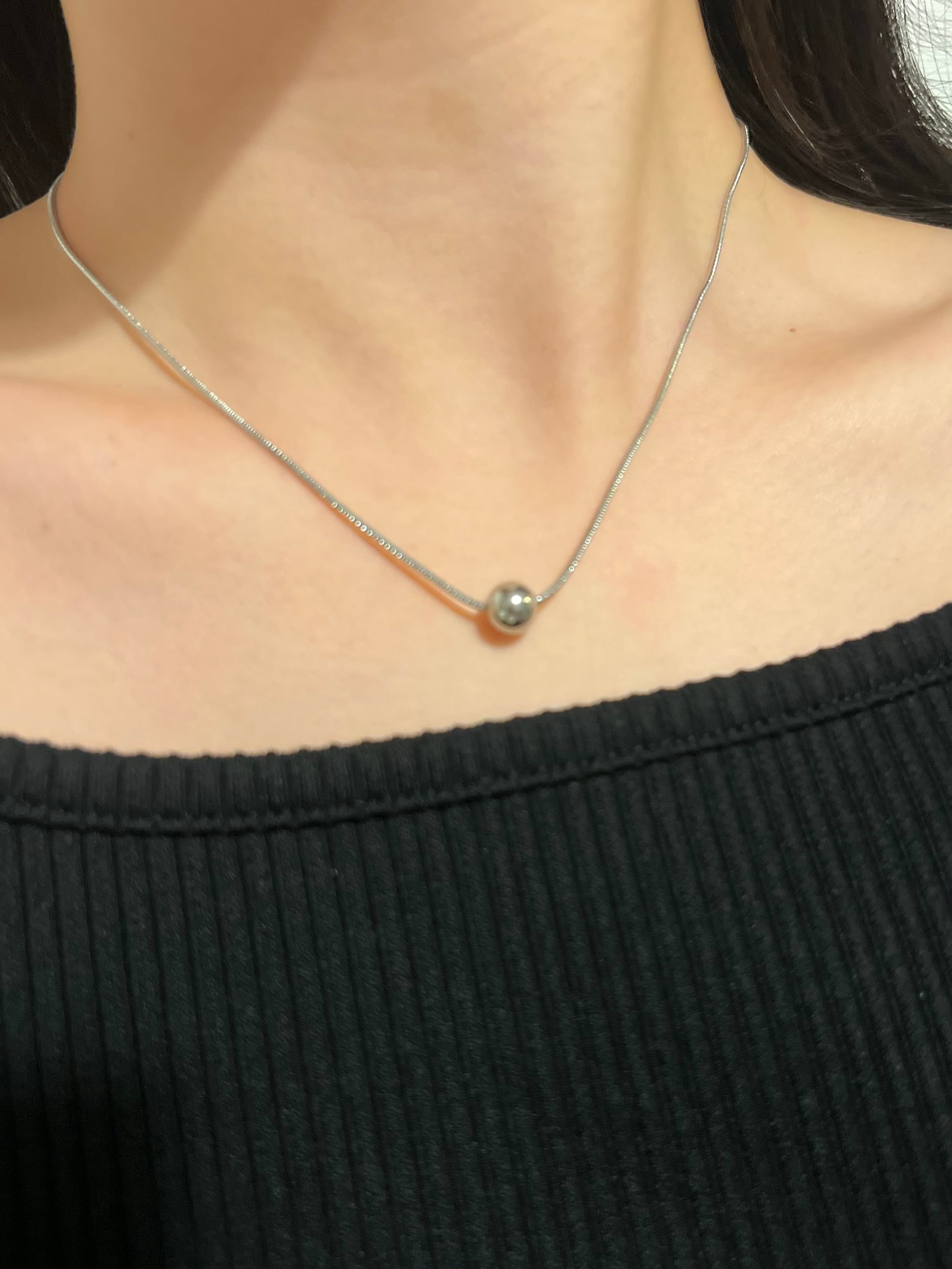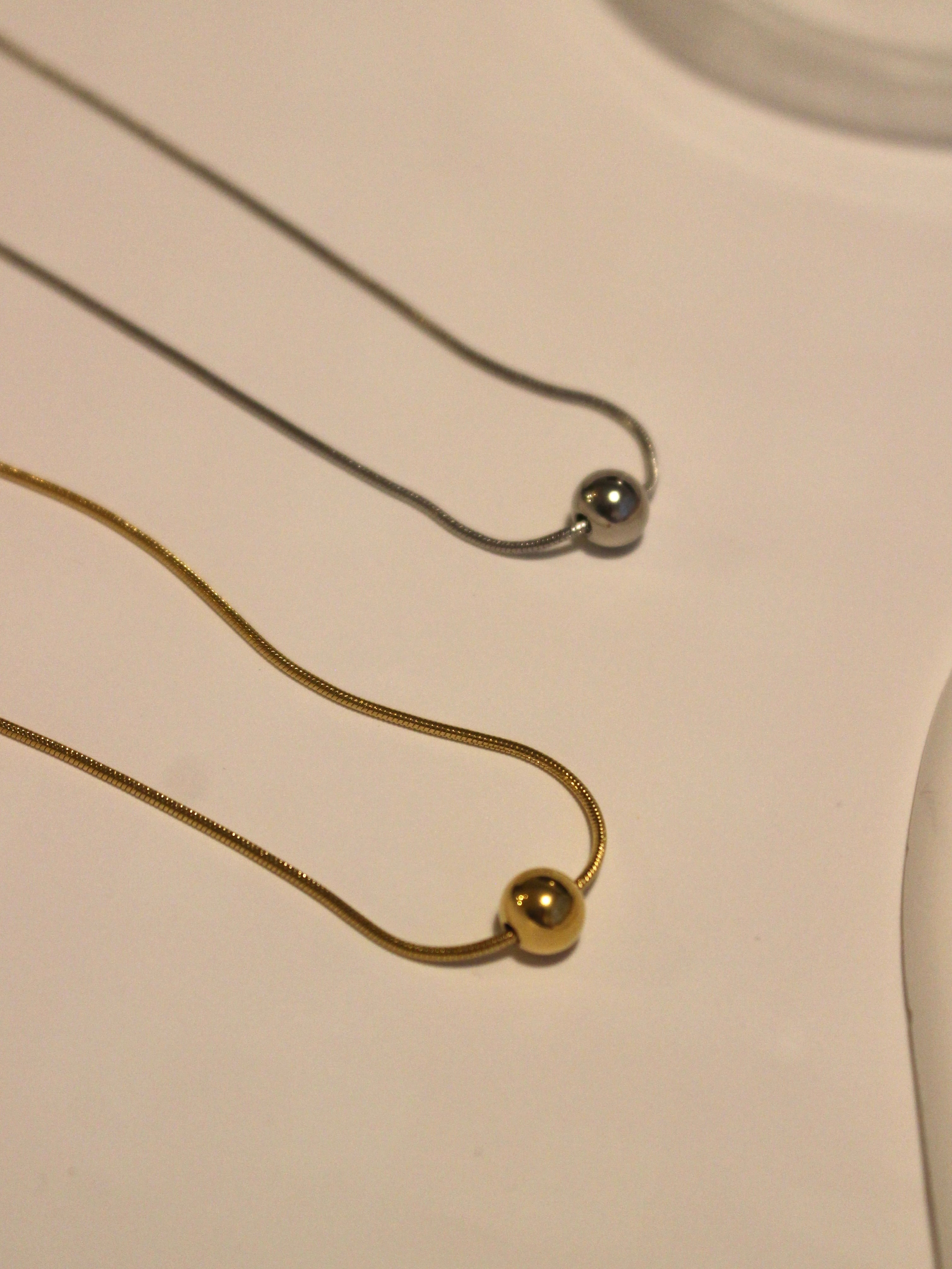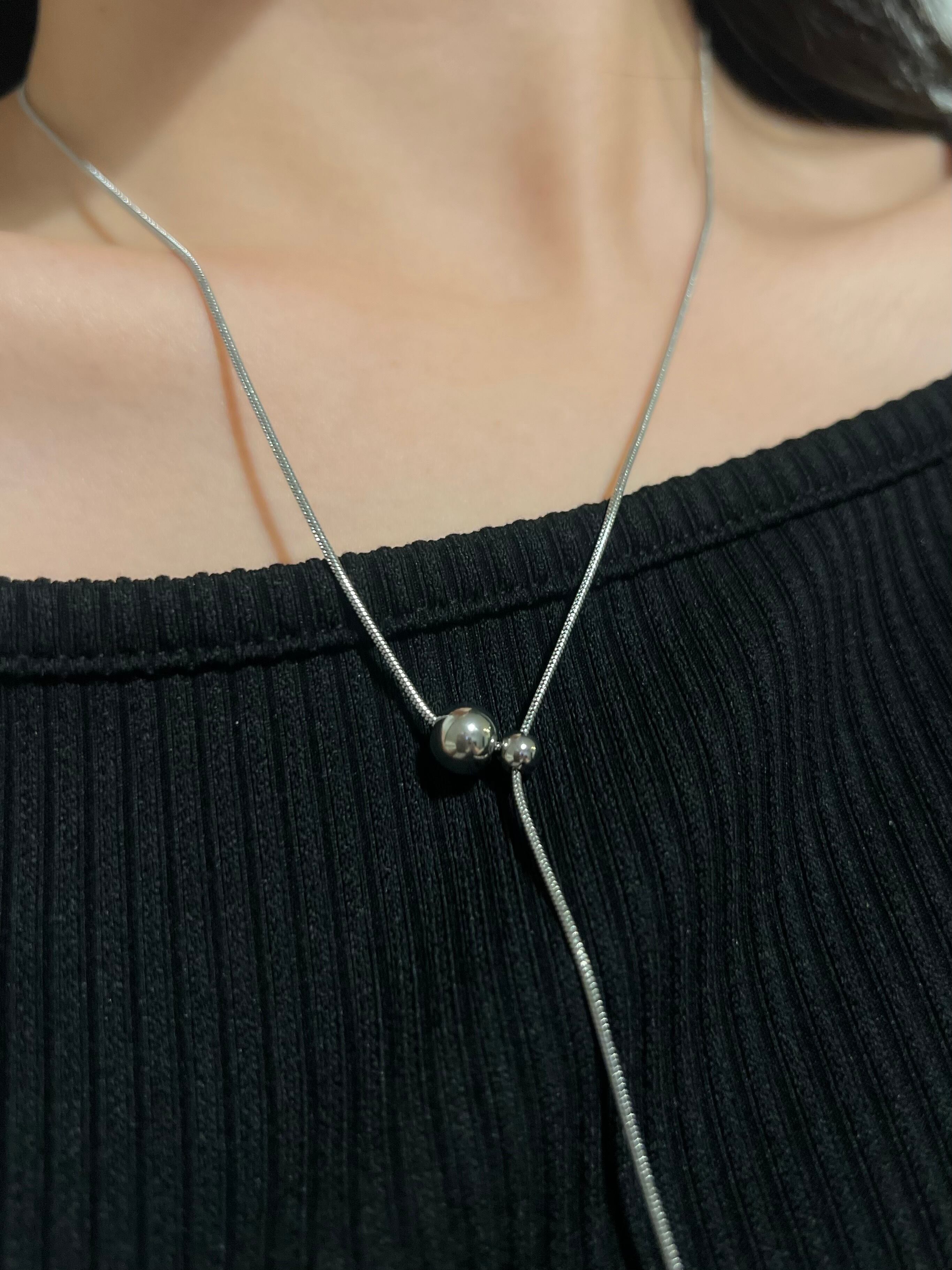なめらかなスネークチェーンにボールモチーフをあしらったロングネックレス。