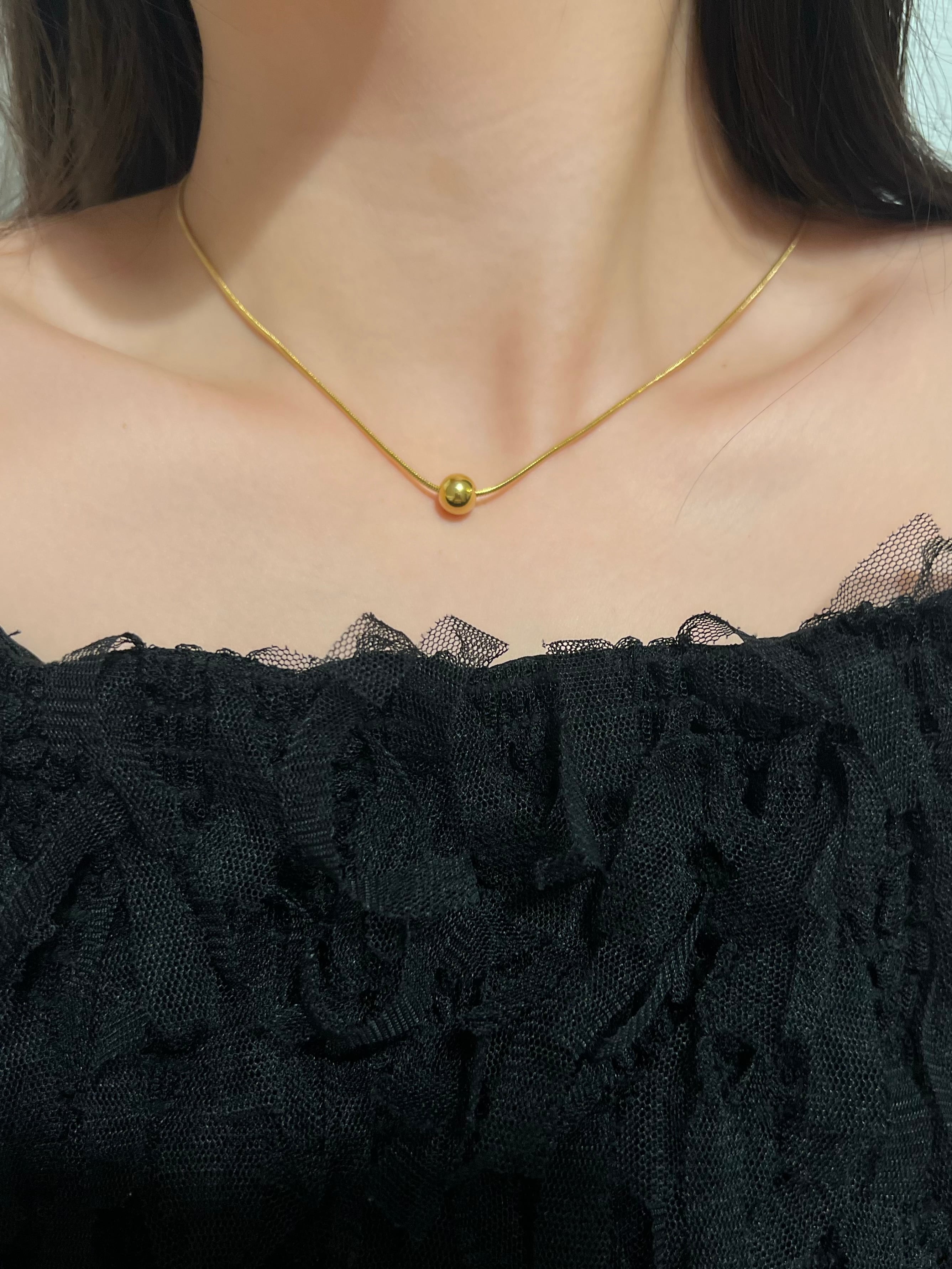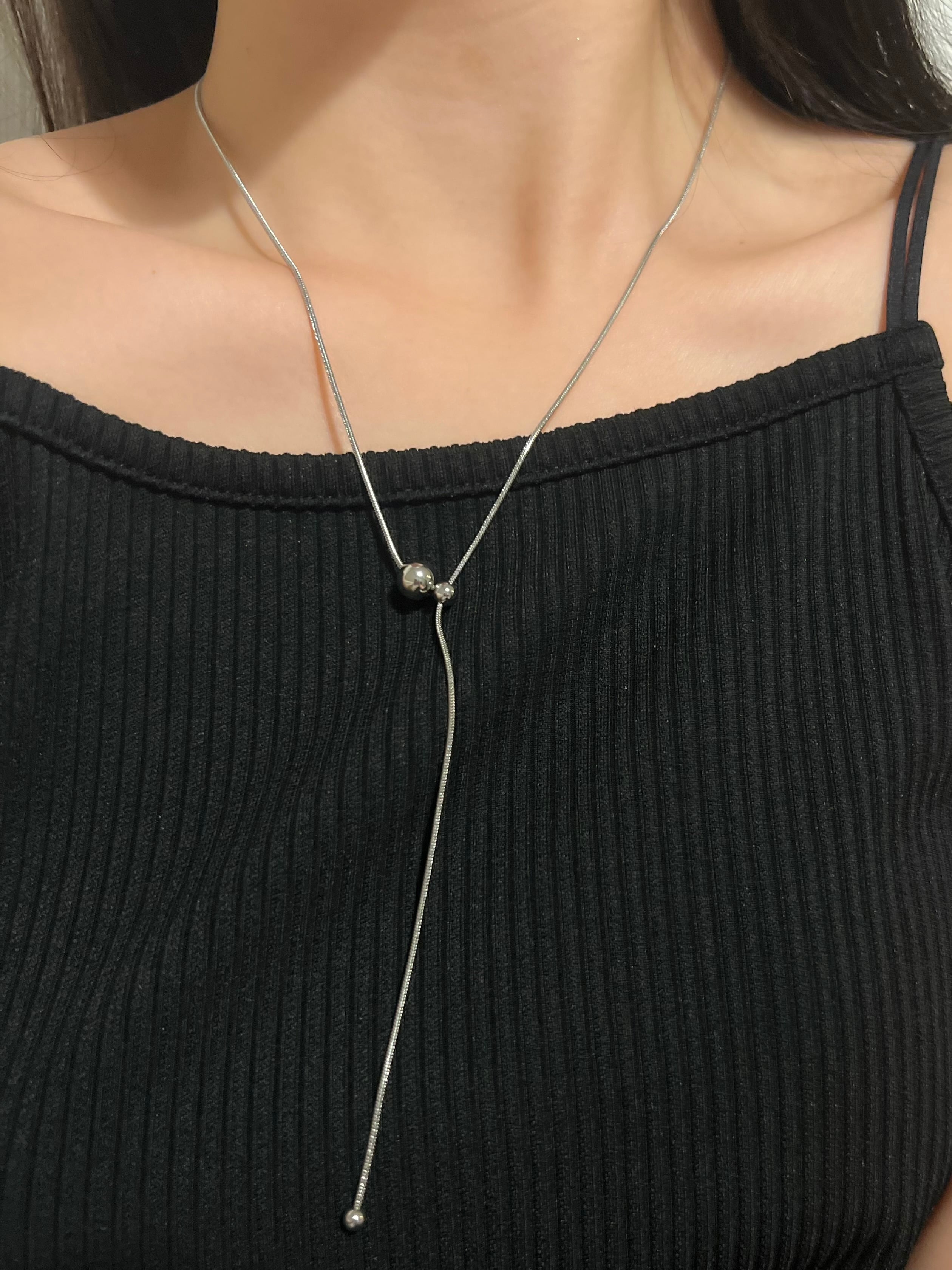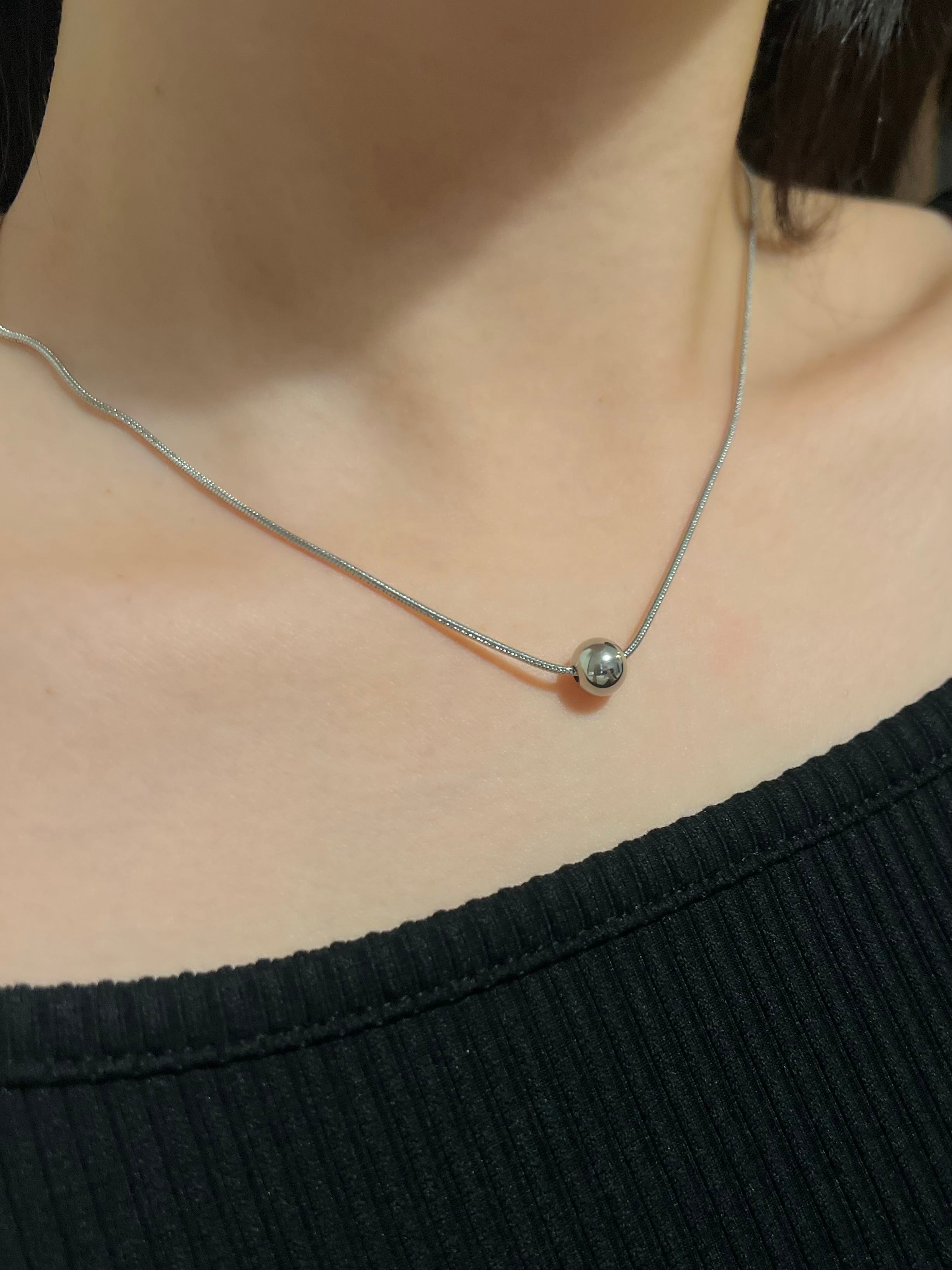 なめらかなスネークチェーンにボールモチーフをあしらったロングネックレス。