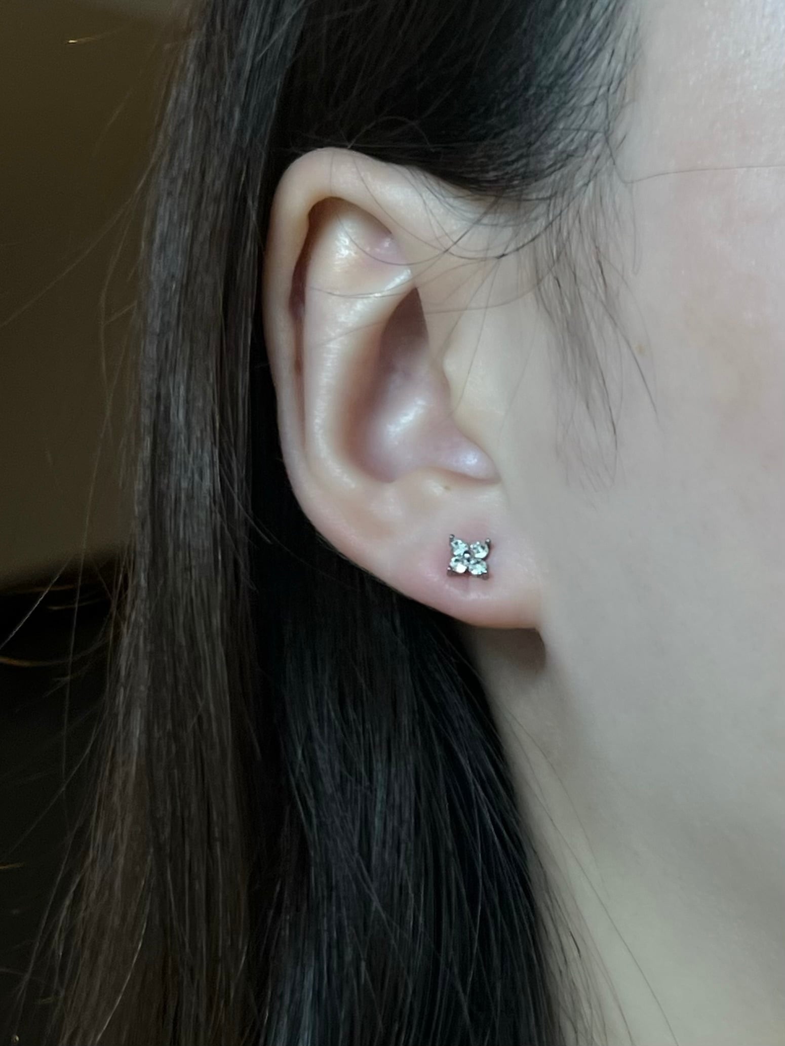 小ぶりなクローバーが、耳元でさりげなく輝くピアス。