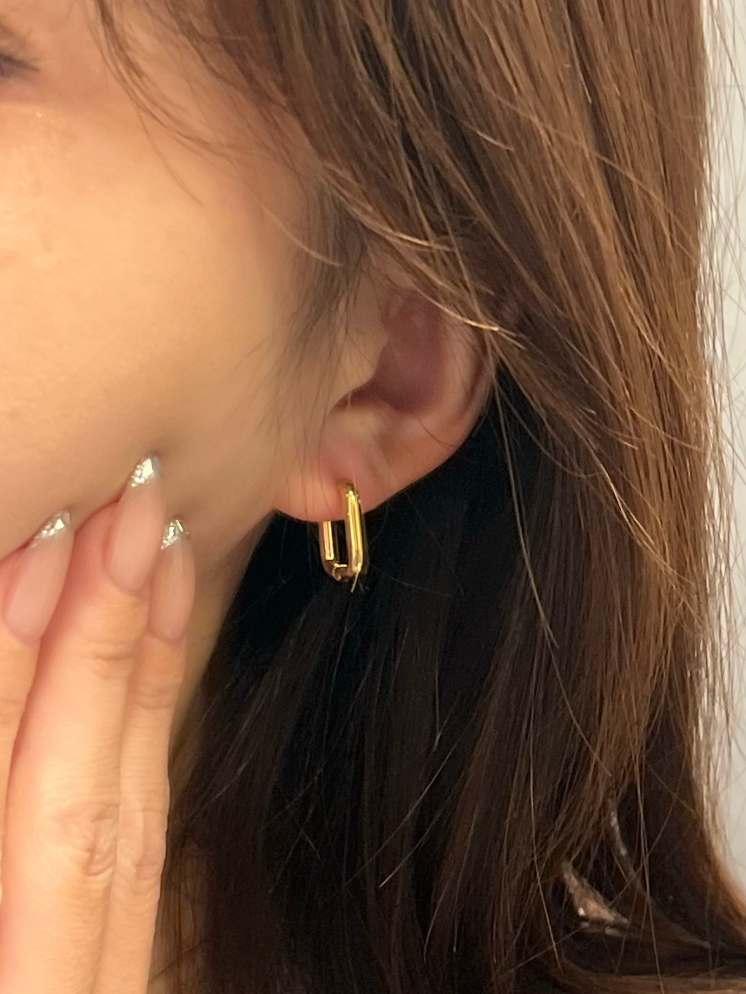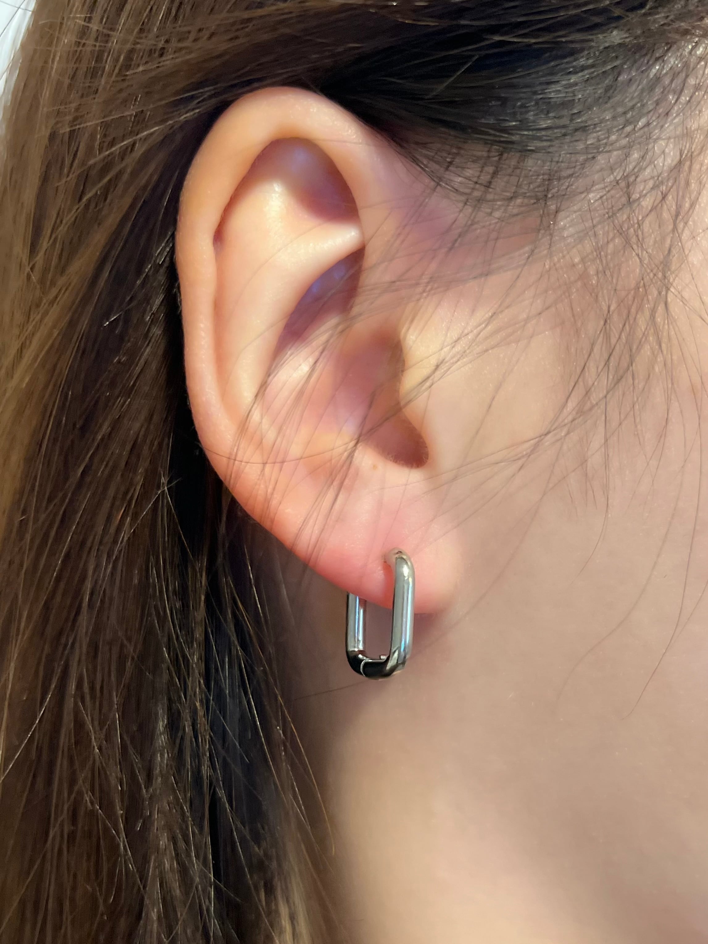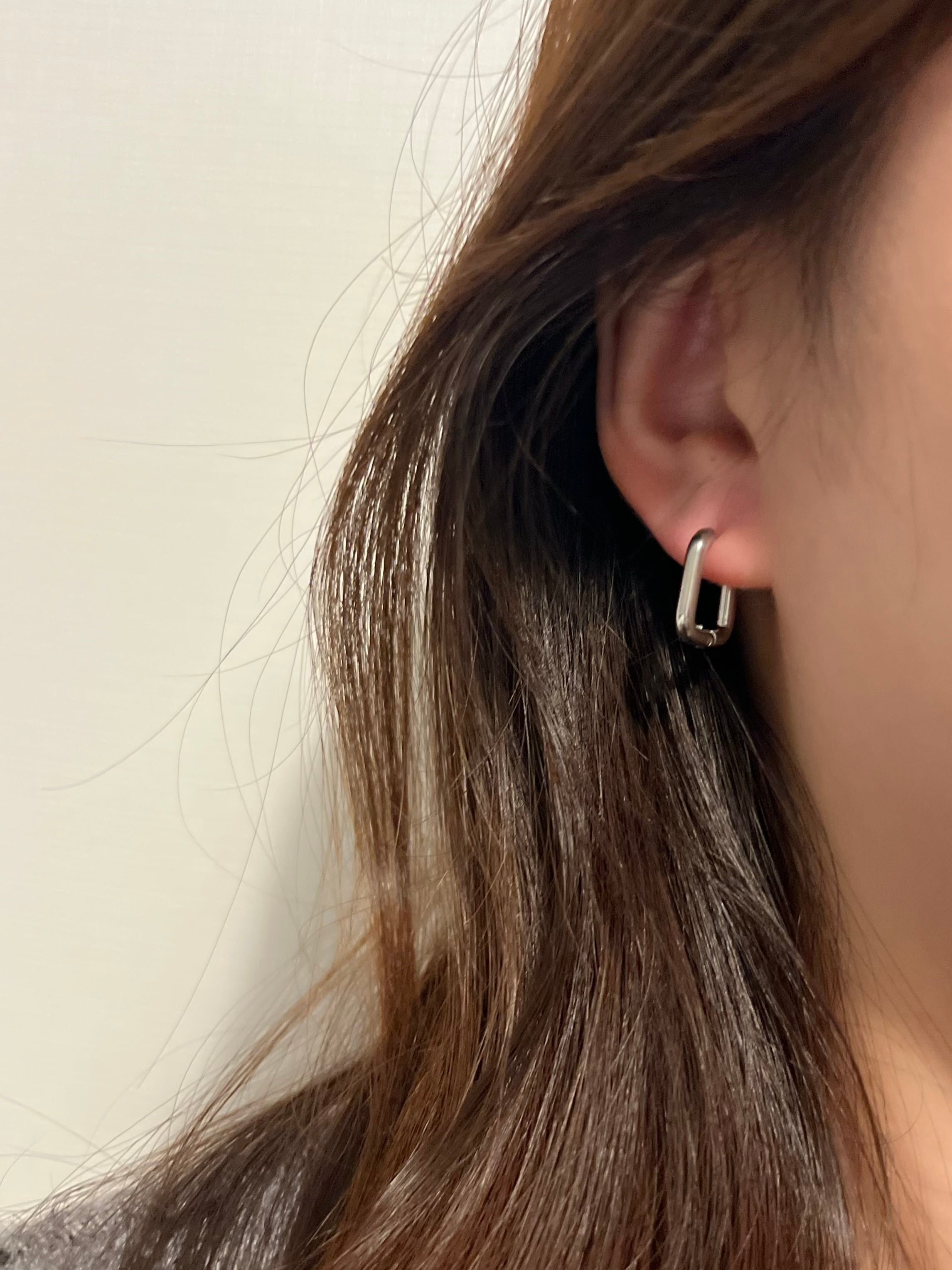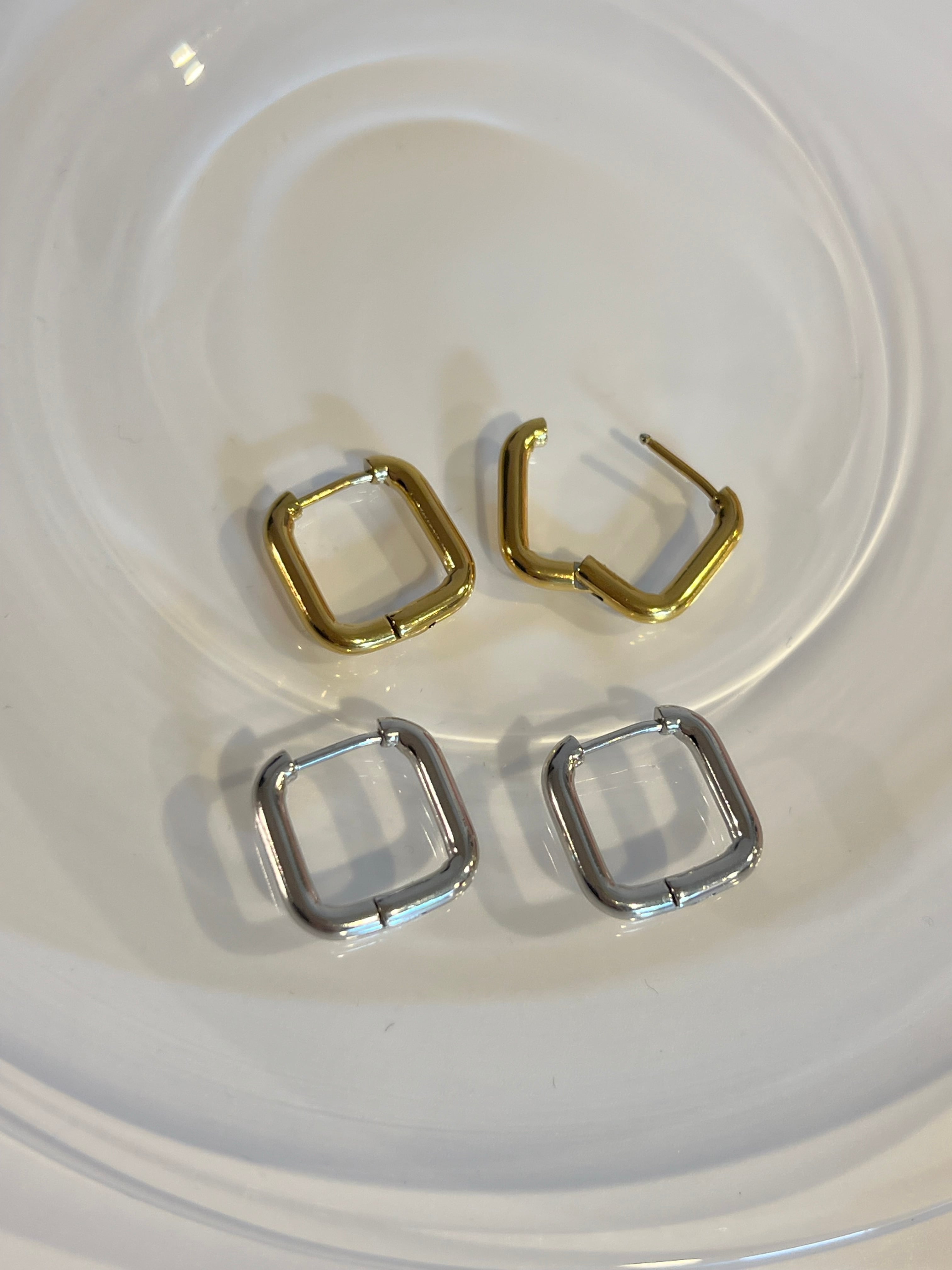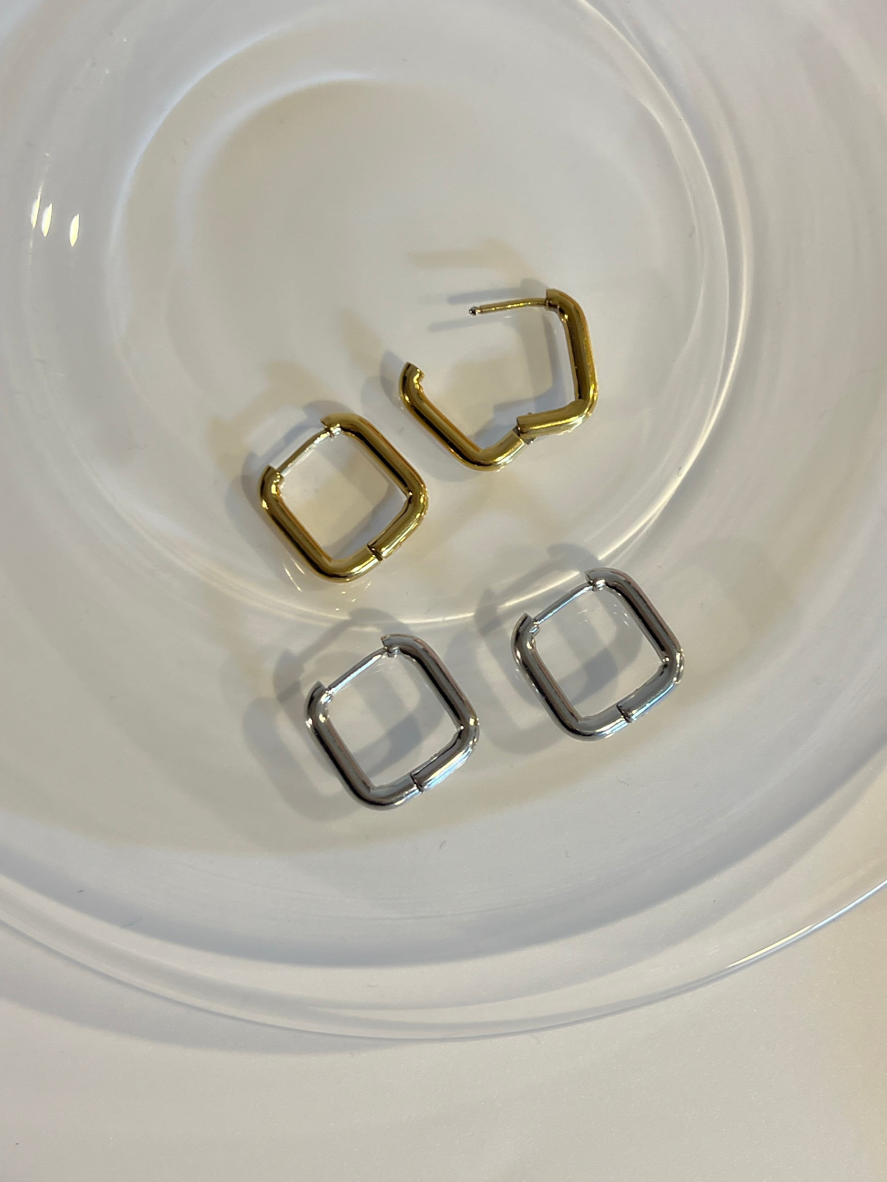 ほどよい存在感のスクエアフープピアス。