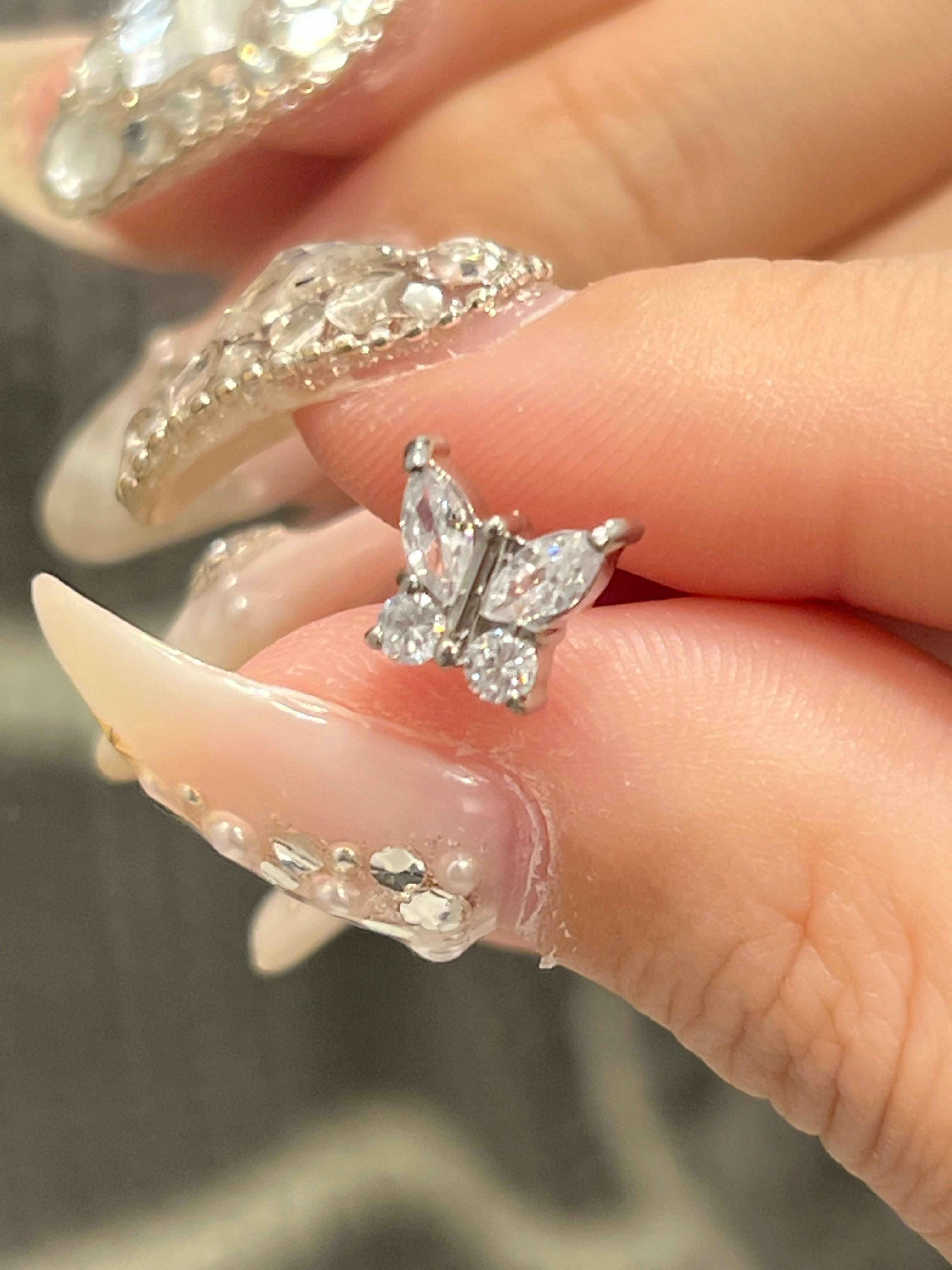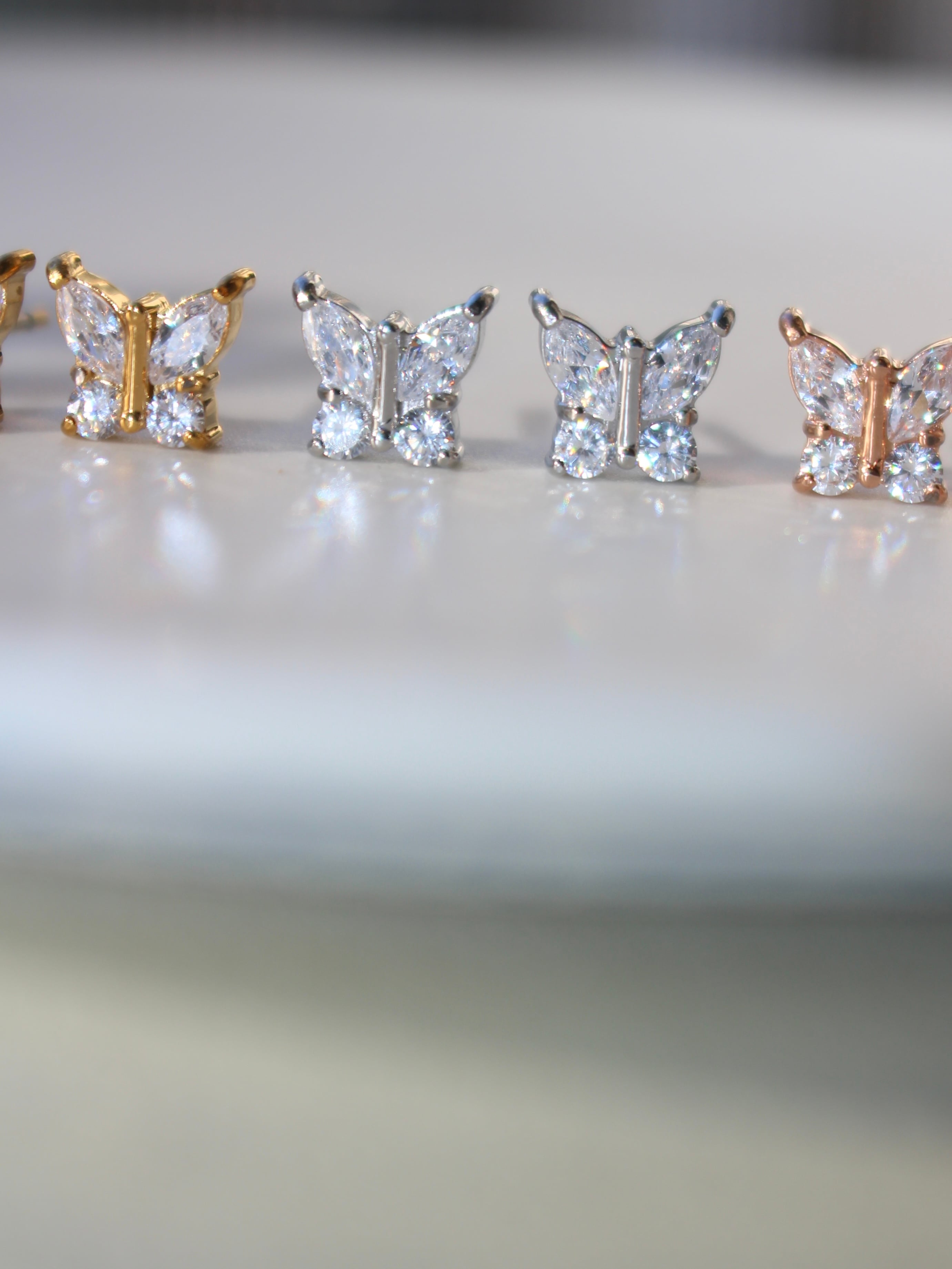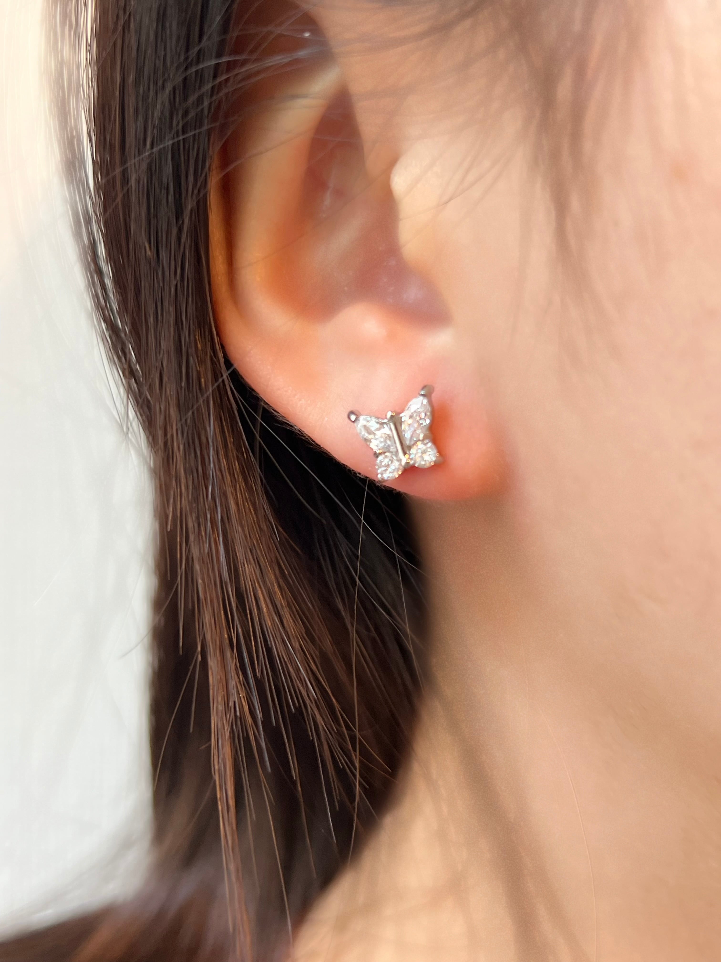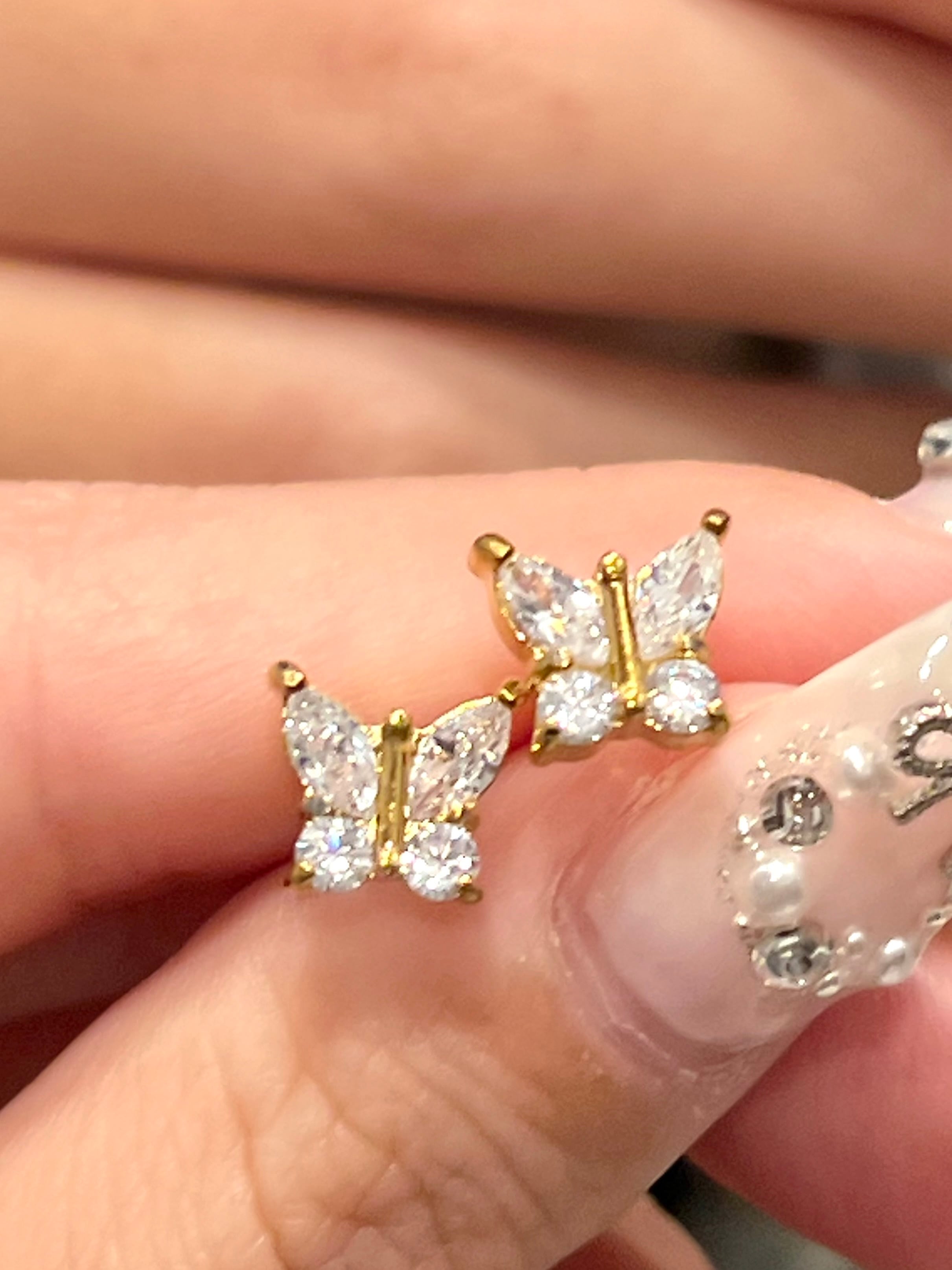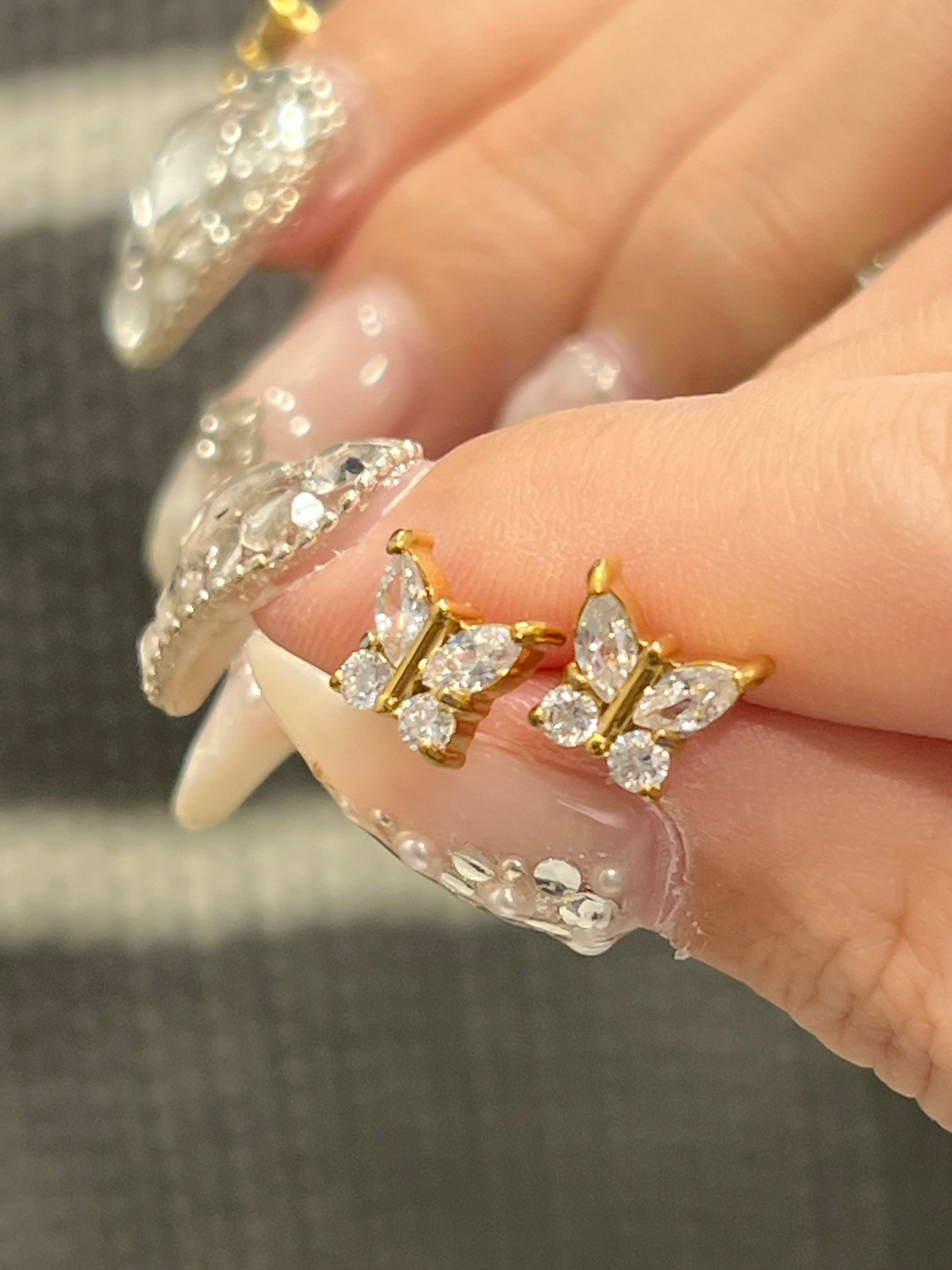 繊細なバタフライモチーフに、きらめくジルコニアをあしらったピアス。