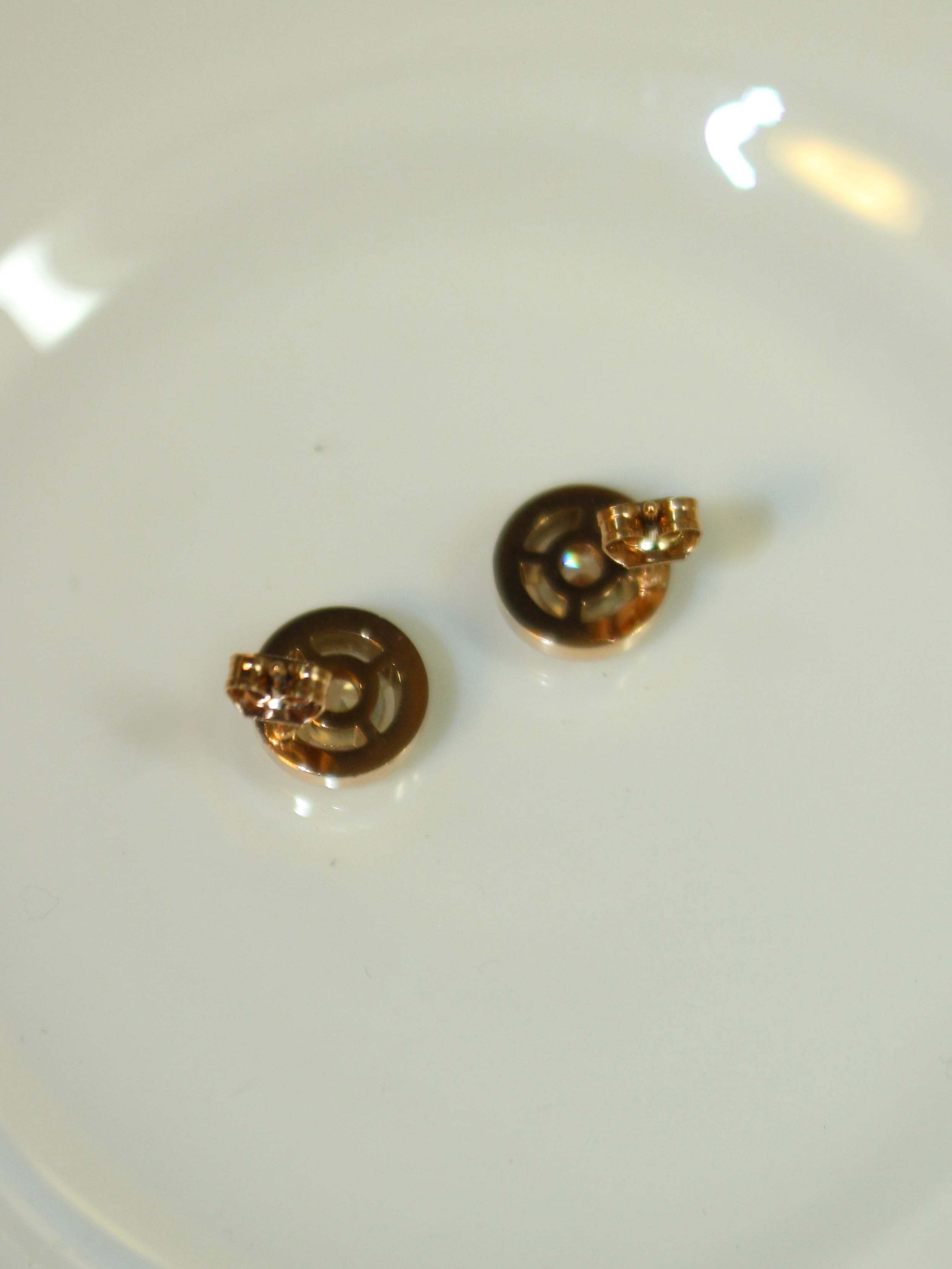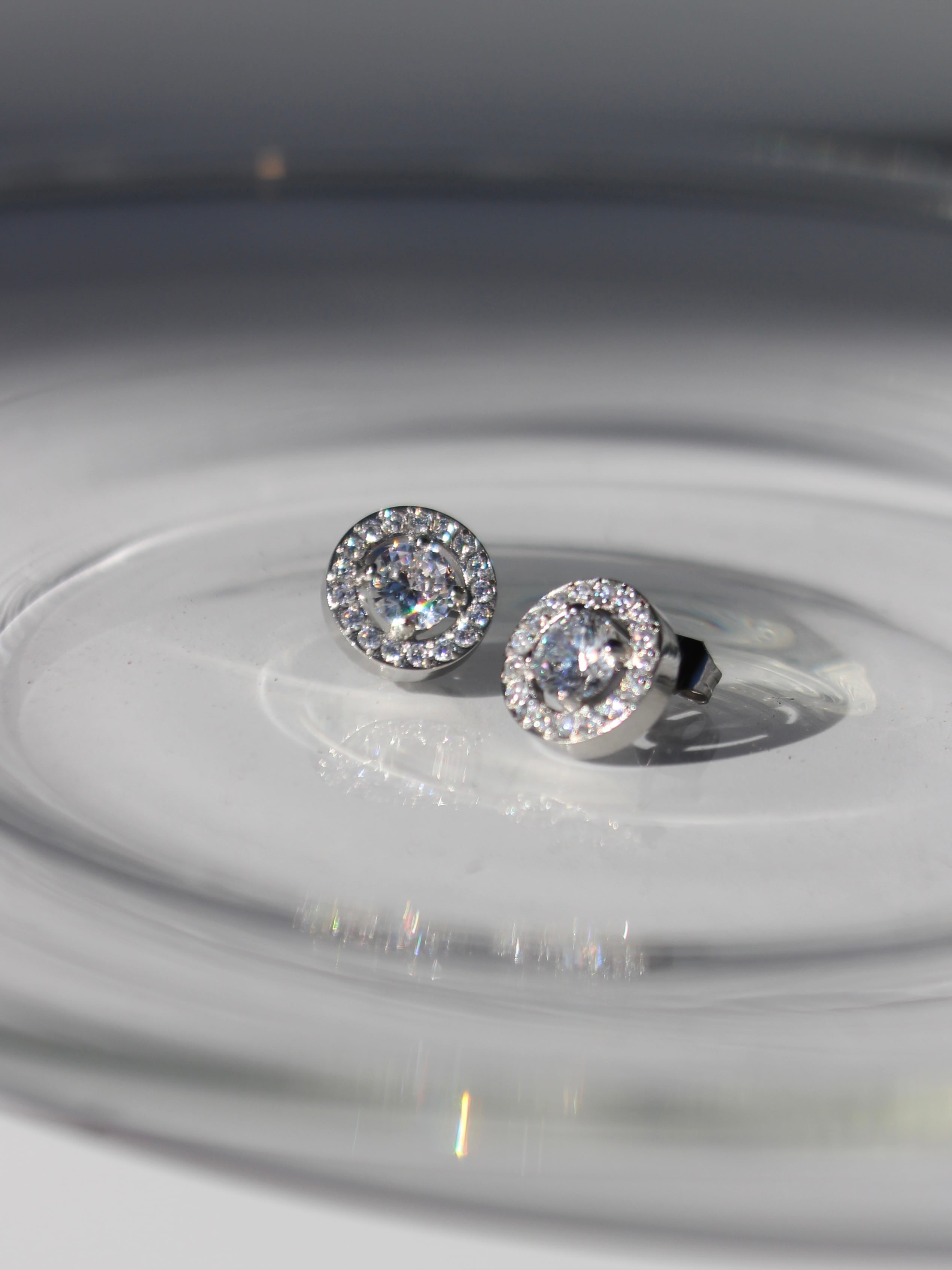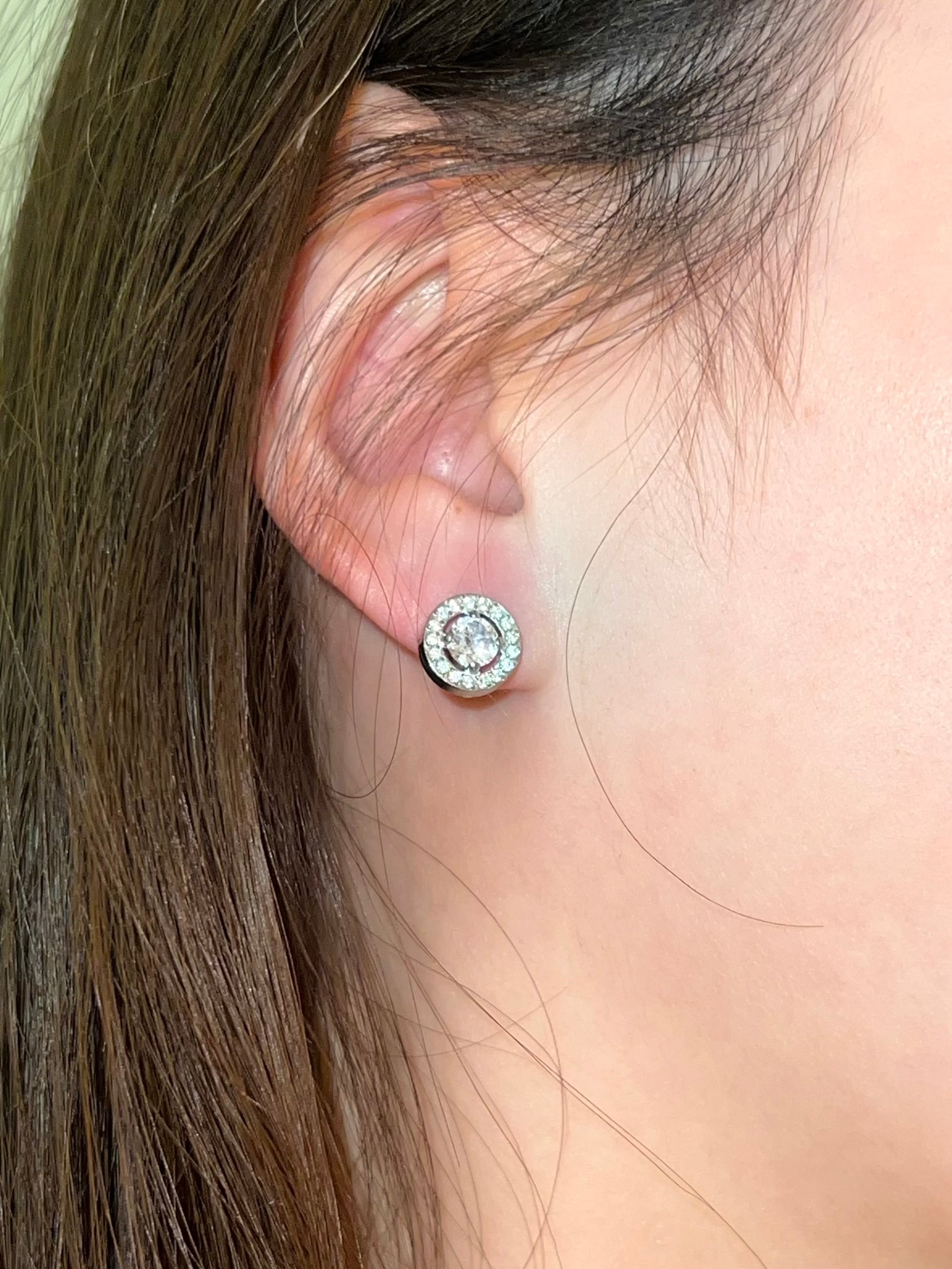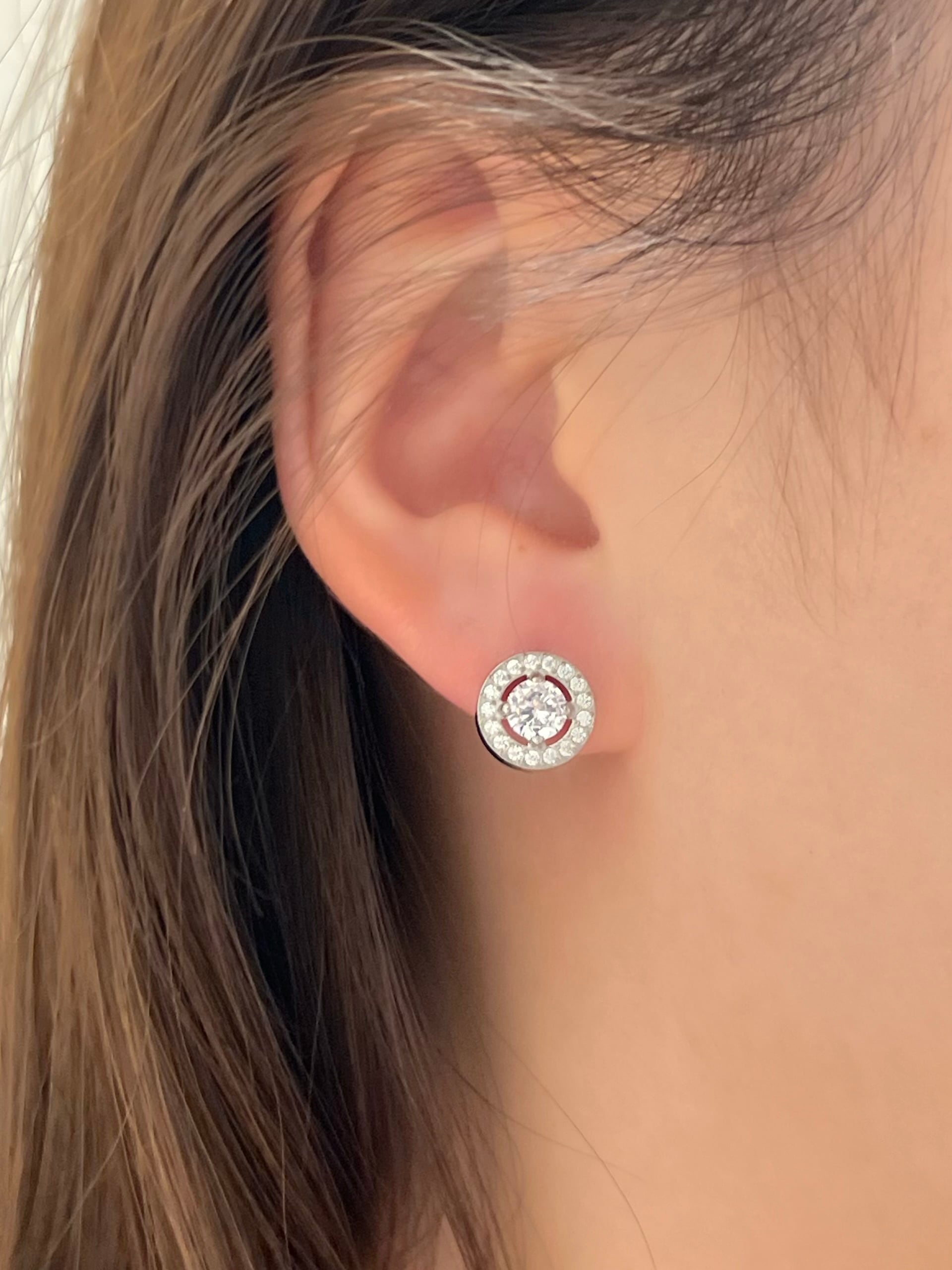 センターのジルコニアを、繊細なストーンでぐるりと囲んださりげなく華やかなピアス。