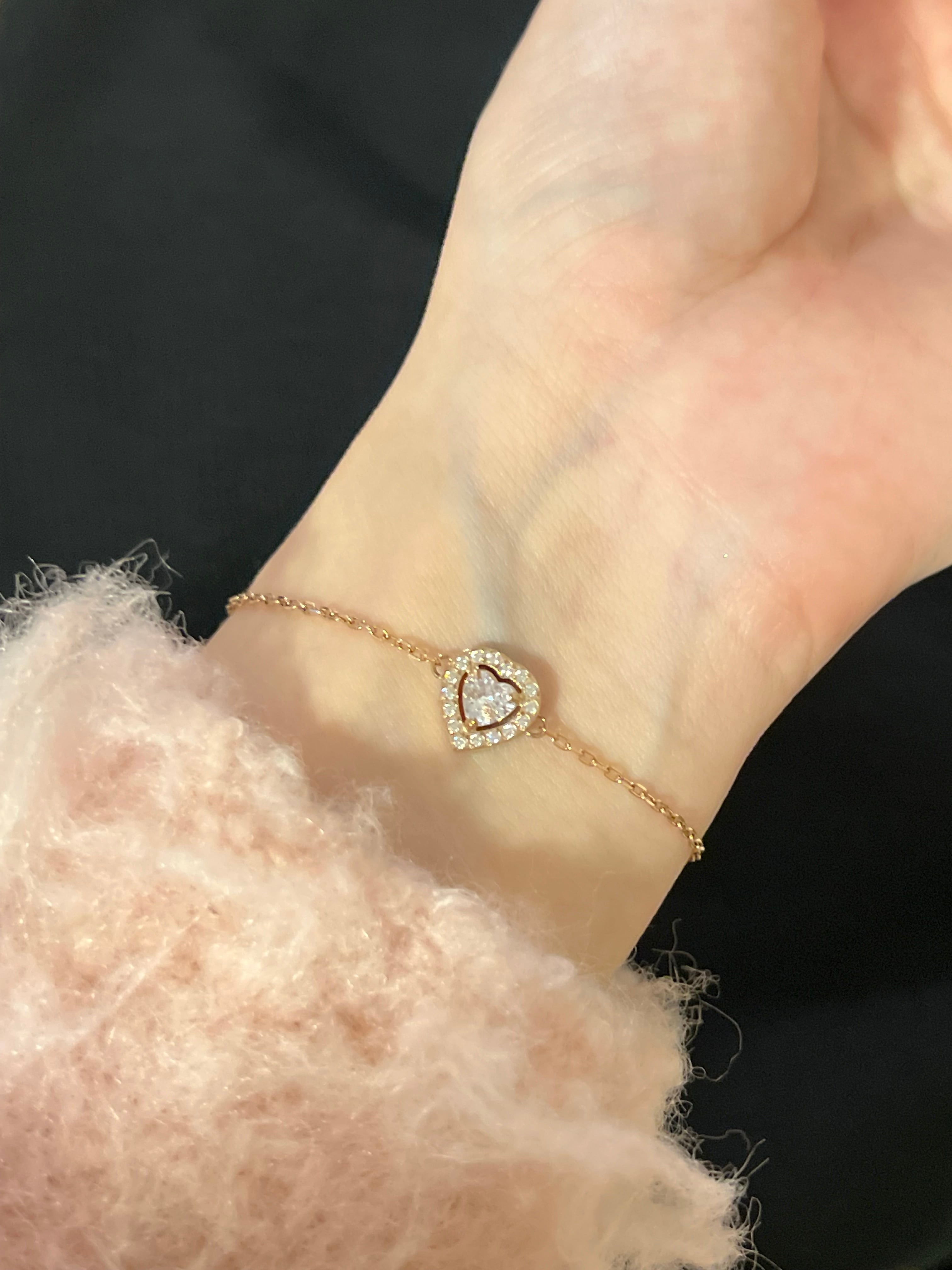 中央にハートジルコニア、その周りを繊細なジルコニアで囲んだブレスレット。