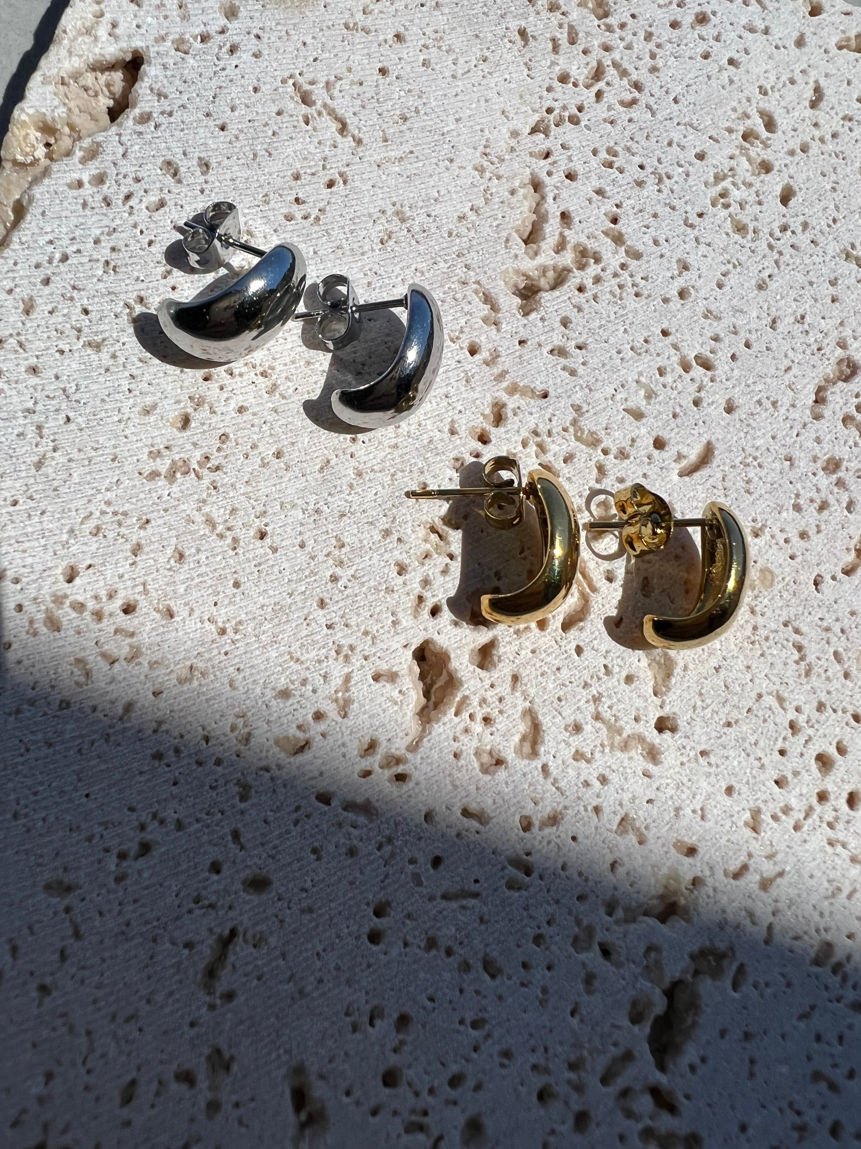 ぽってりとしたフォルムが可愛いシンプルで存在感のあるピアス。